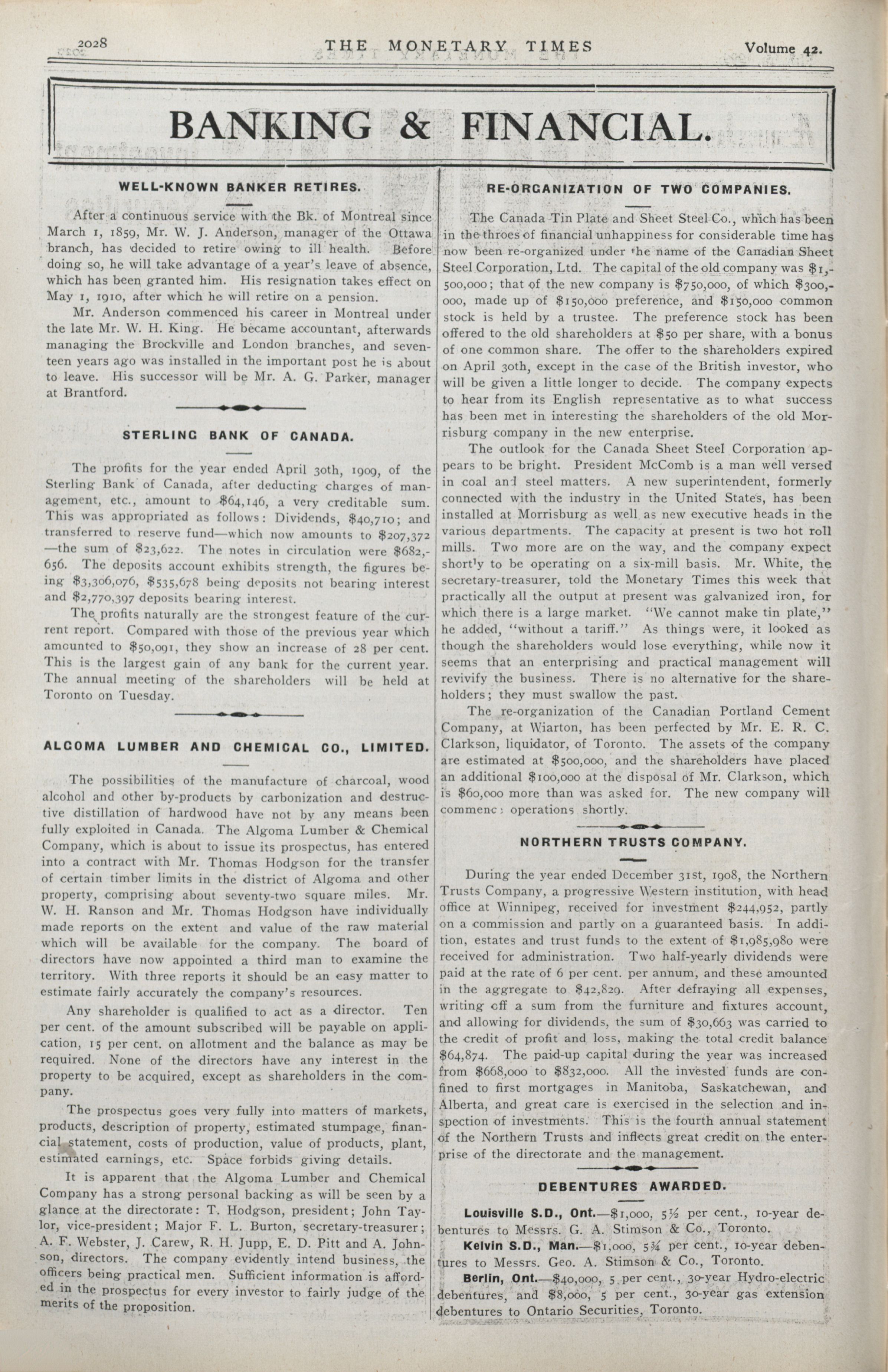 The monetary times, trade review and insurance chronicle : Vol. 42 No. 46. (May 15th, 1909.)