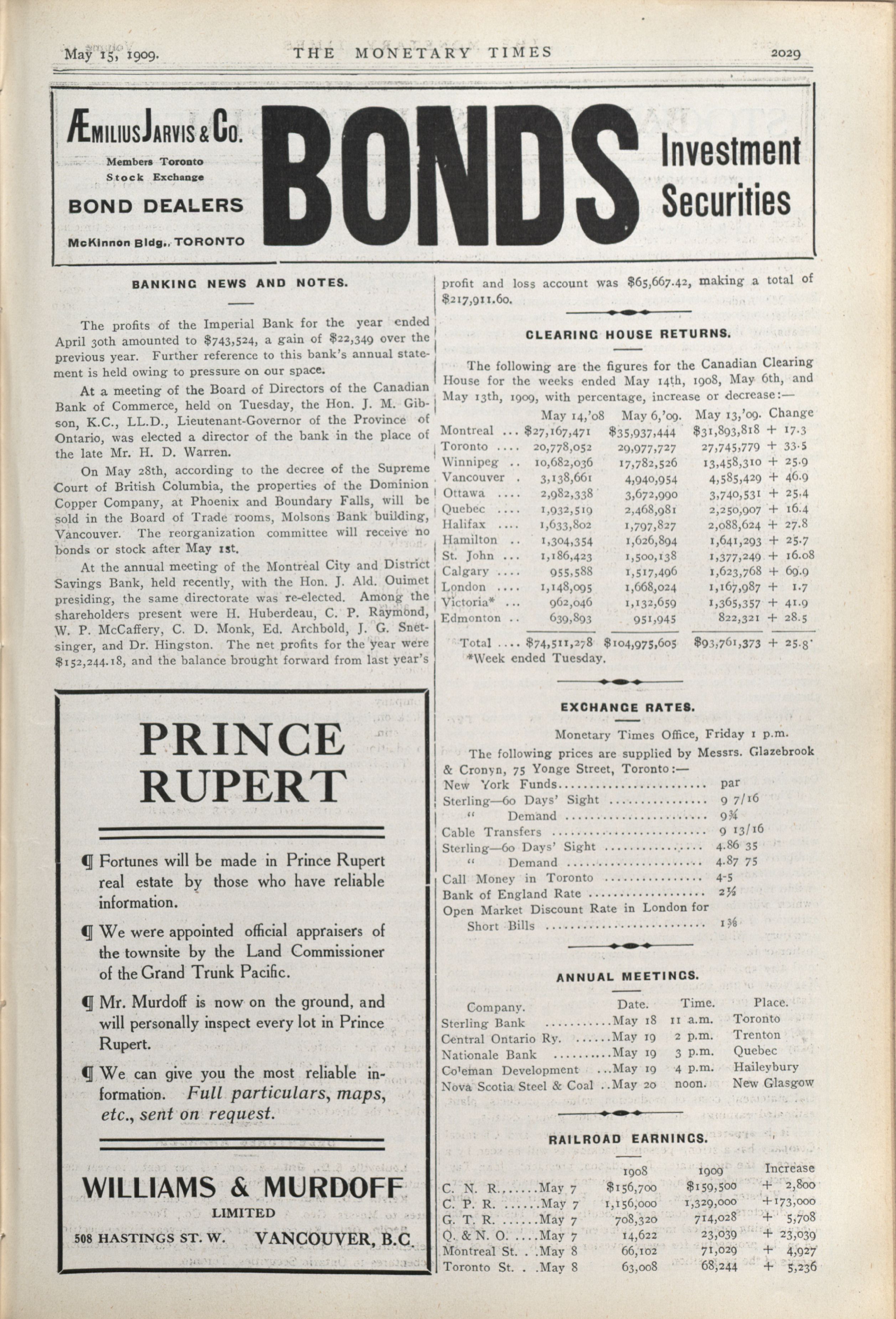 The monetary times, trade review and insurance chronicle : Vol. 42 No. 46. (May 15th, 1909.)