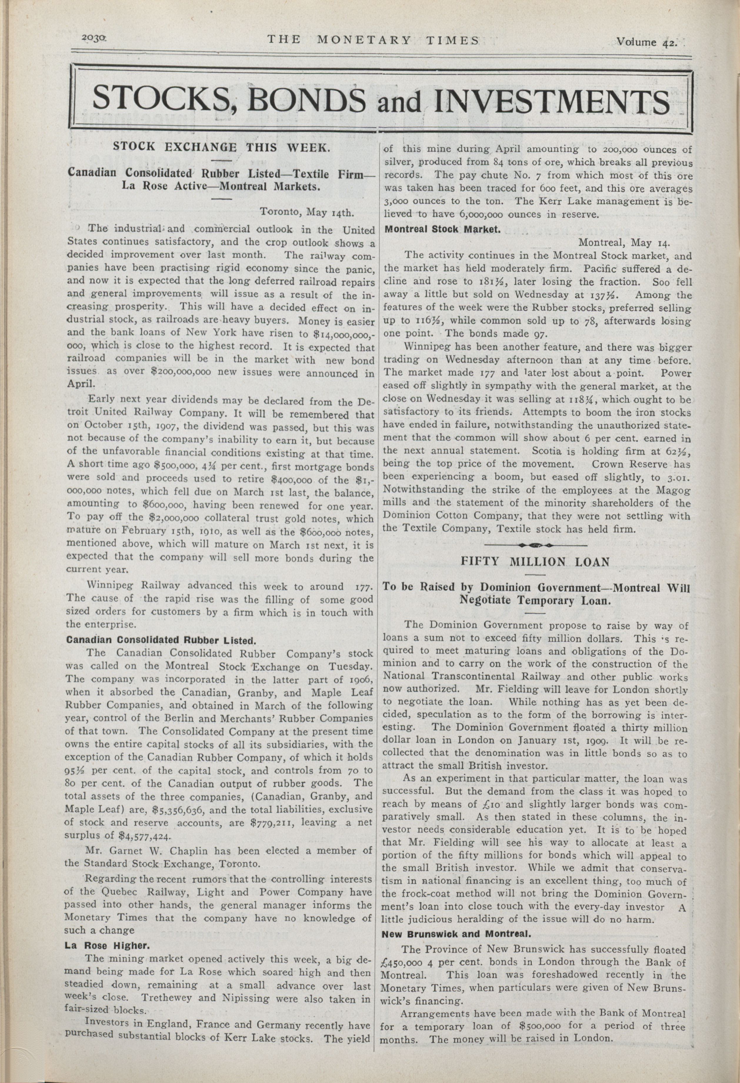 The monetary times, trade review and insurance chronicle : Vol. 42 No. 46. (May 15th, 1909.)