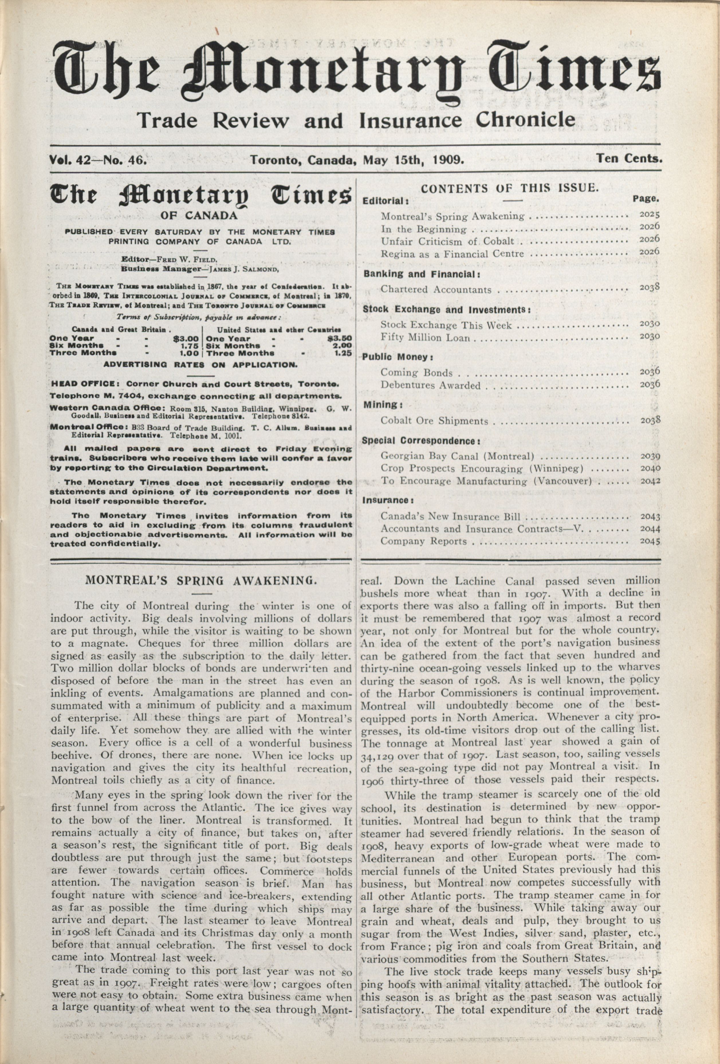 - The Monetary Times, trade review and insurance chronicle. : Vol. 42 No. 46. (May 15th, 1909.)