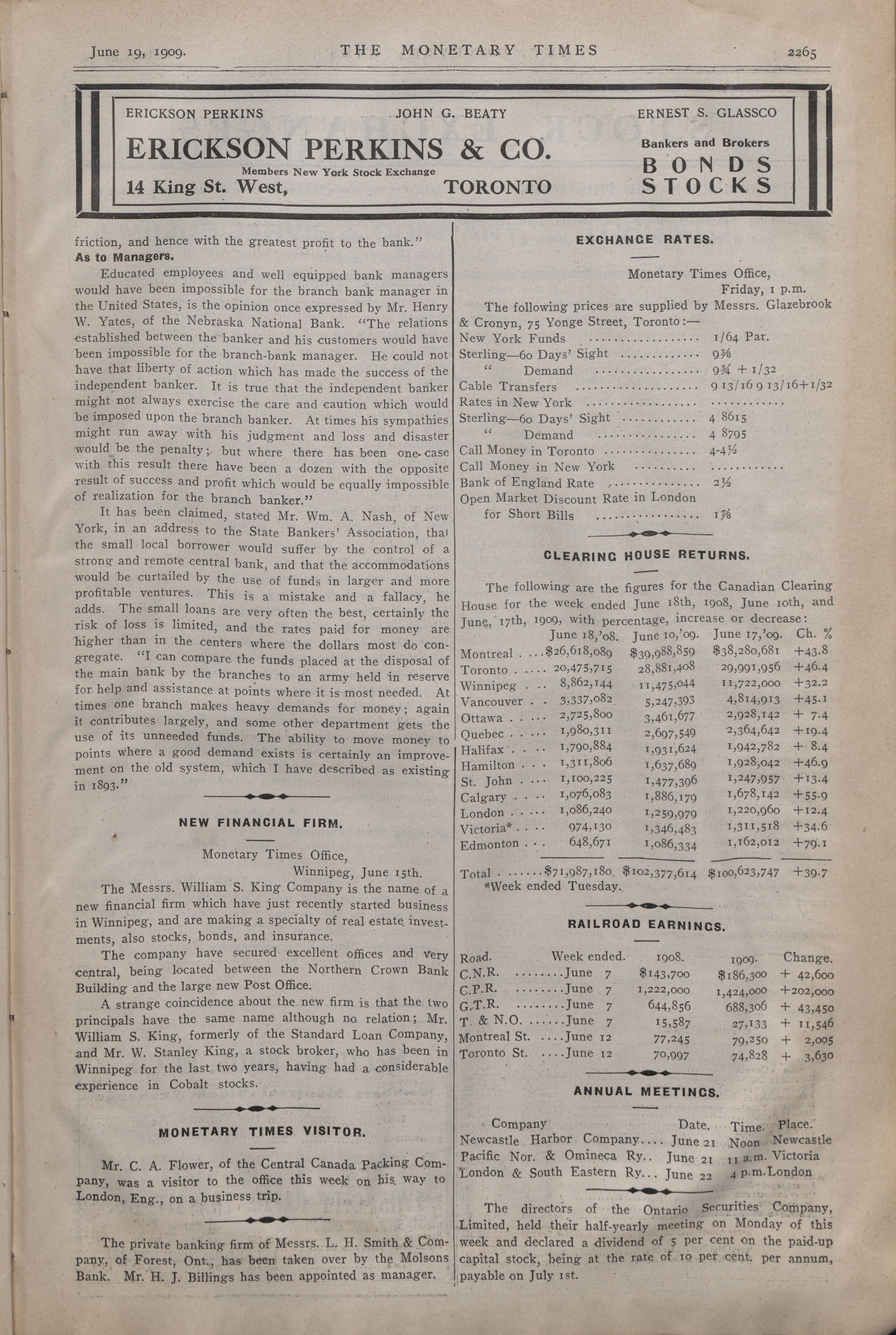 The monetary times, trade review and insurance chronicle : Vol. 42 No. 51. (June 19th, 1909.)