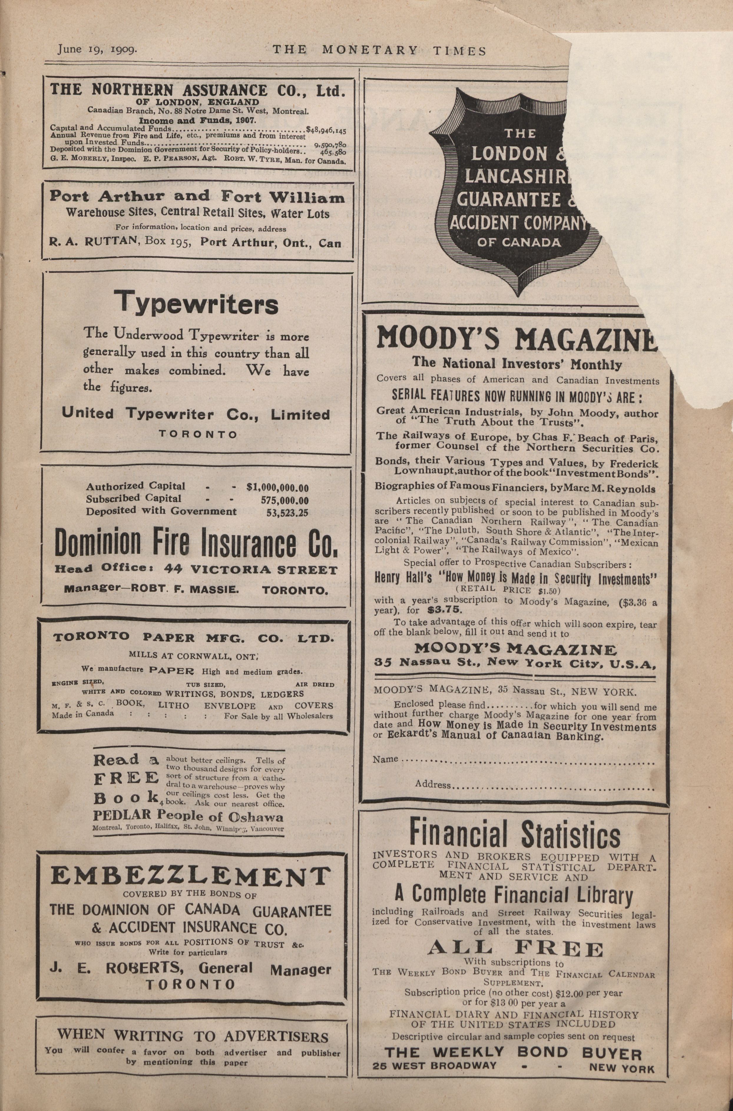 - The Monetary Times, trade review and insurance chronicle. : Vol. 42 No. 51. (June 19th, 1909.)
