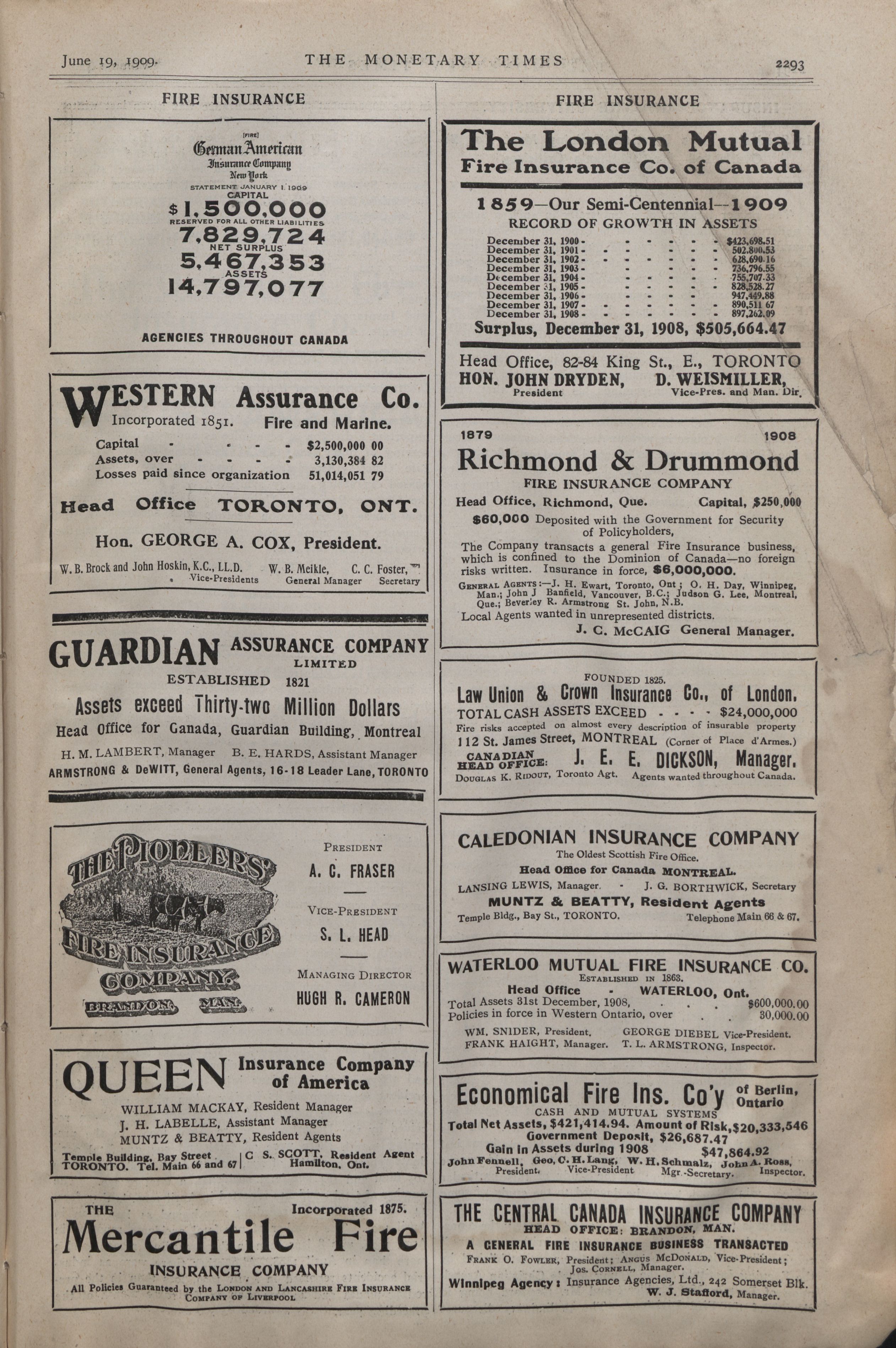 - The Monetary Times, trade review and insurance chronicle. : Vol. 42 No. 51. (June 19th, 1909.)