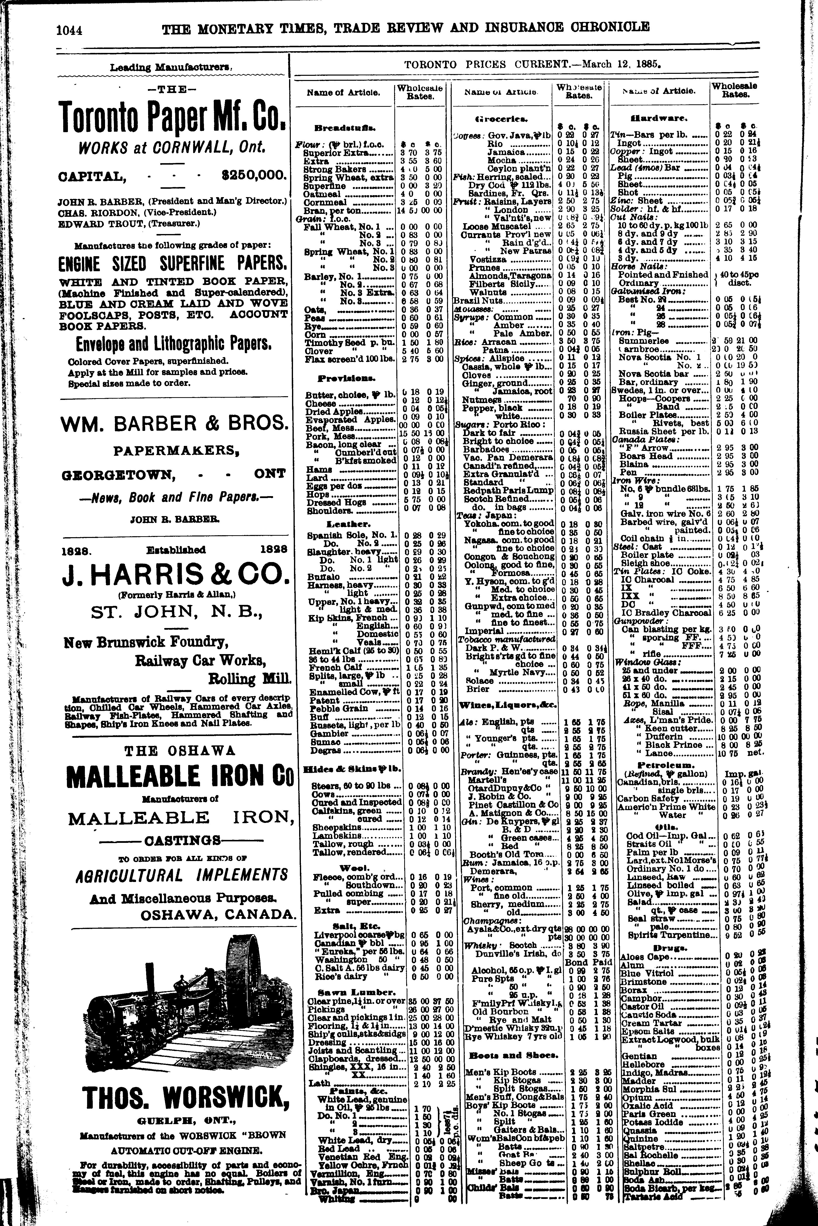 The monetary times, trade review and insurance chronicle : [Vol. 18, no. 37 (Mar. 13, 1885)]