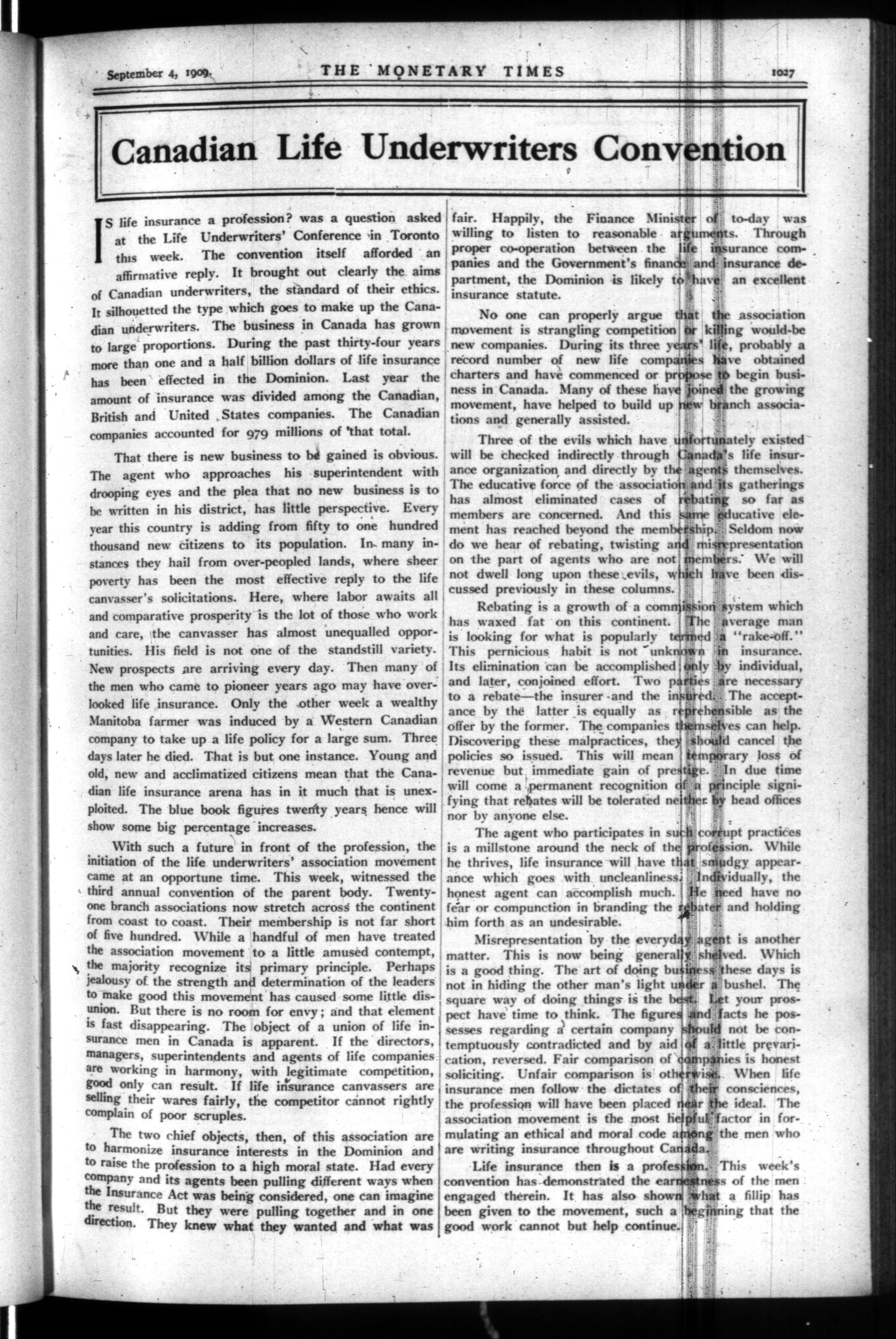 The monetary times, trade review and insurance chronicle : Vol. 43, No. 10 (September 4, 1909)
