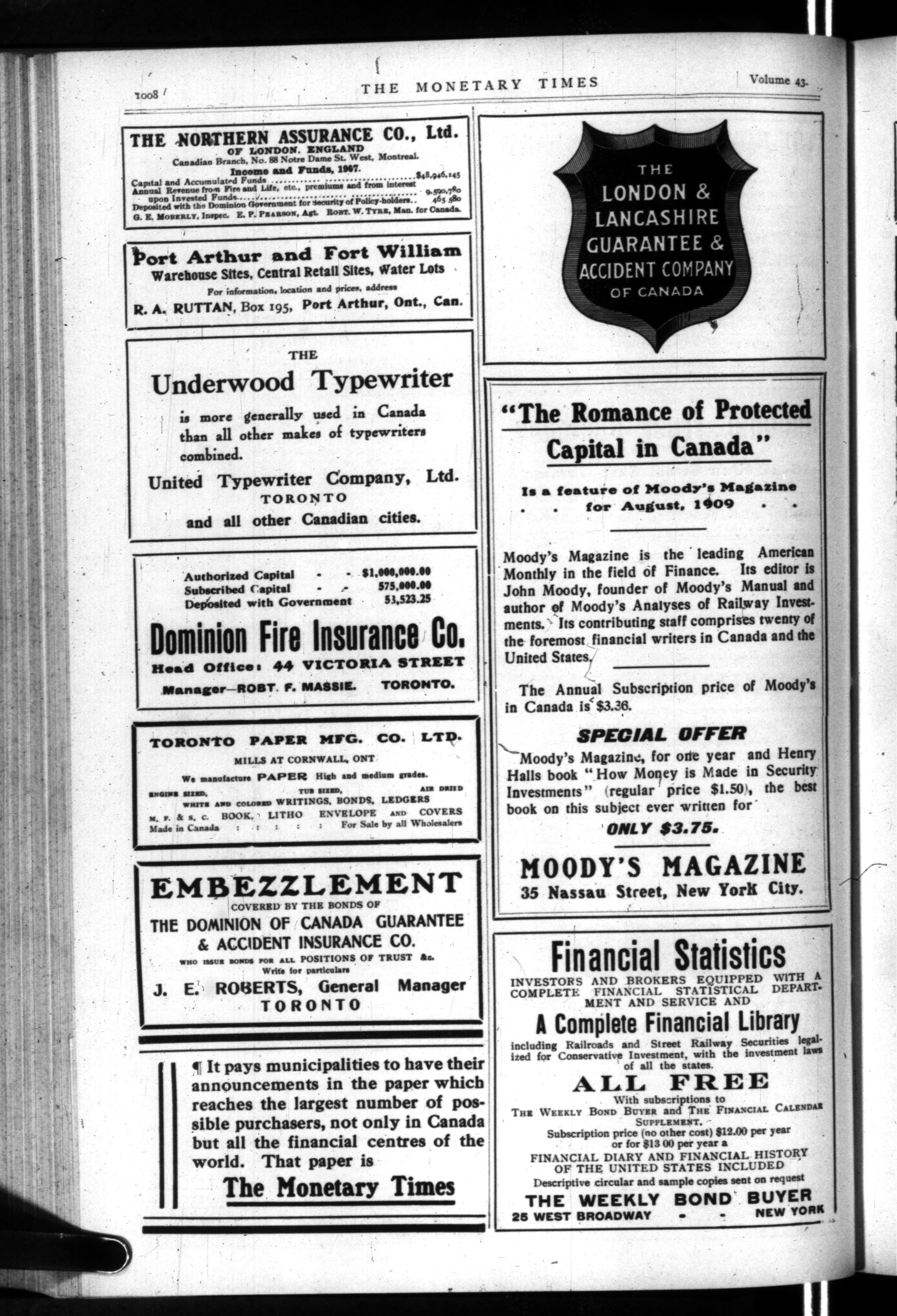 The monetary times, trade review and insurance chronicle : Vol. 43, No. 10 (September 4, 1909)