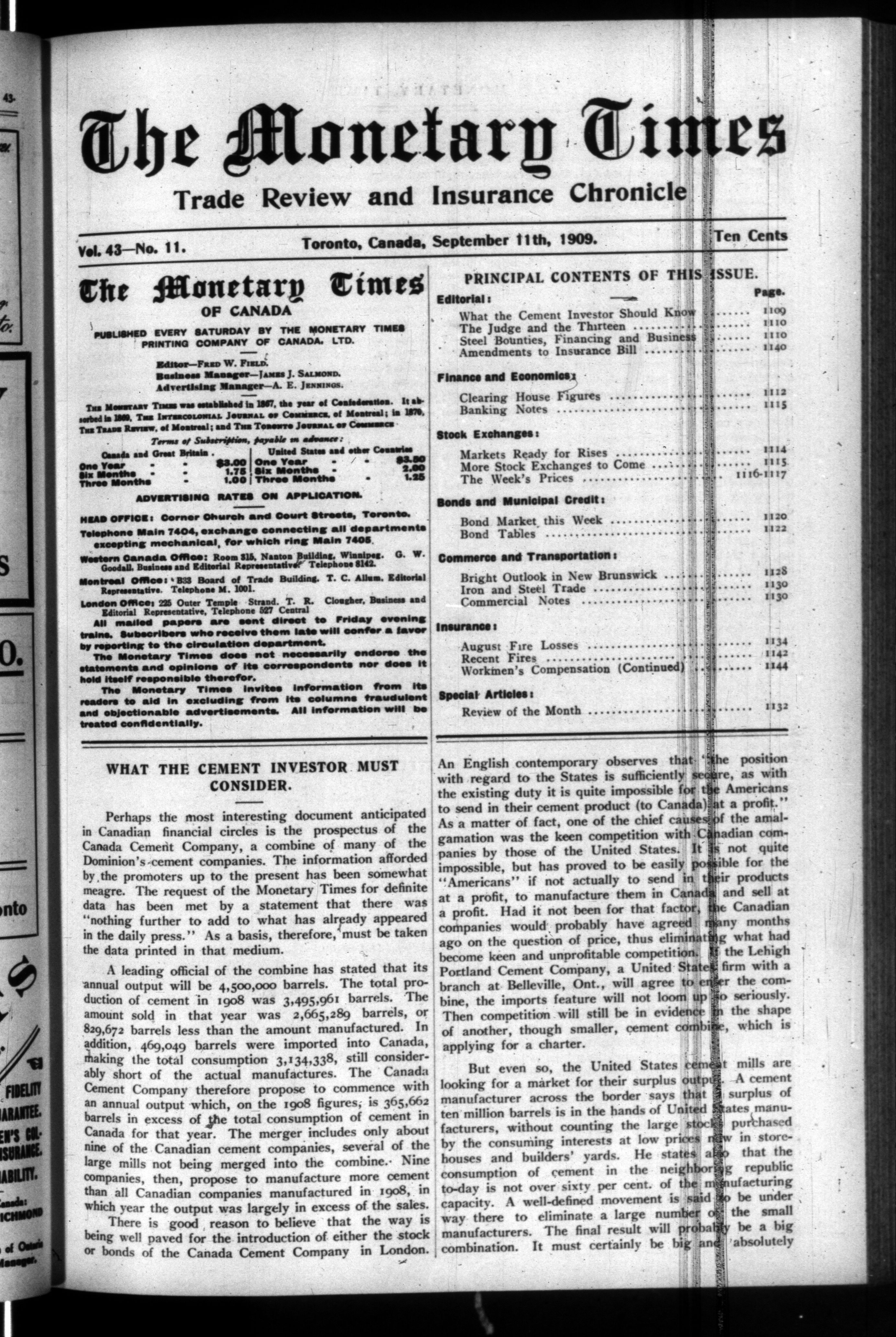 The monetary times, trade review and insurance chronicle : Vol. 43, No. 11 (September 11, 1909)