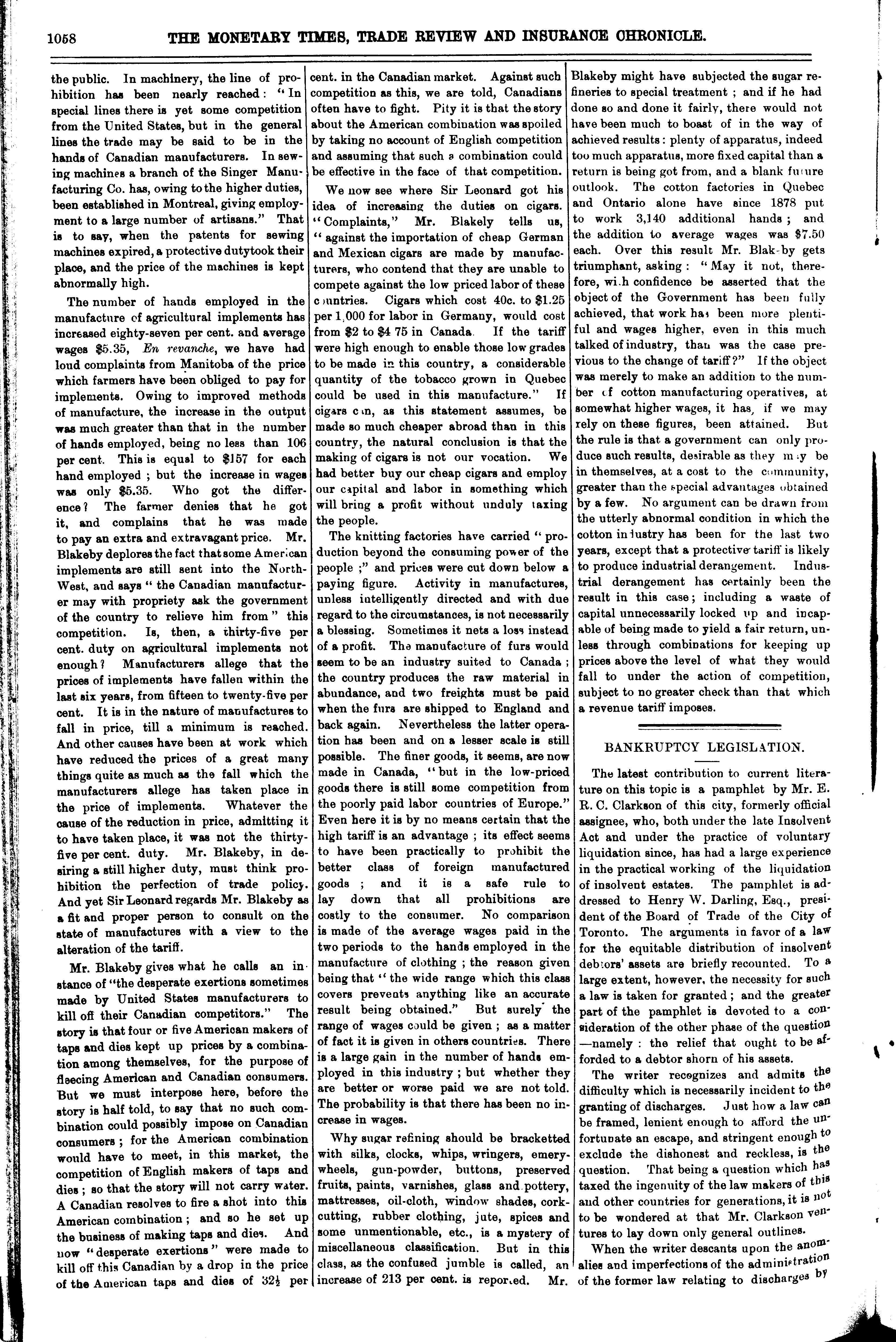 The monetary times, trade review and insurance chronicle : [Vol. 18, no. 38 (Mar. 20, 1885)]