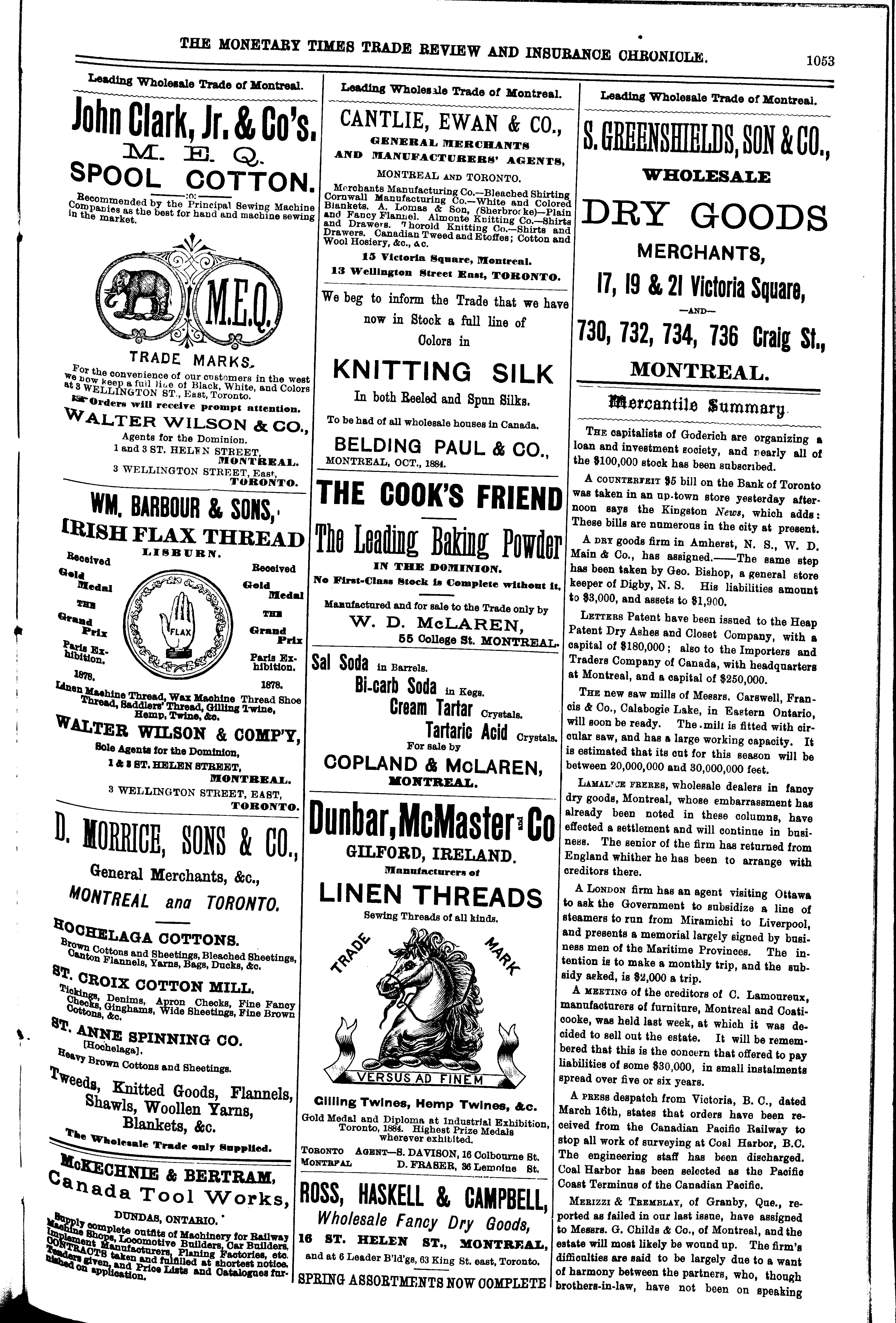 The monetary times, trade review and insurance chronicle : [Vol. 18, no. 38 (Mar. 20, 1885)]