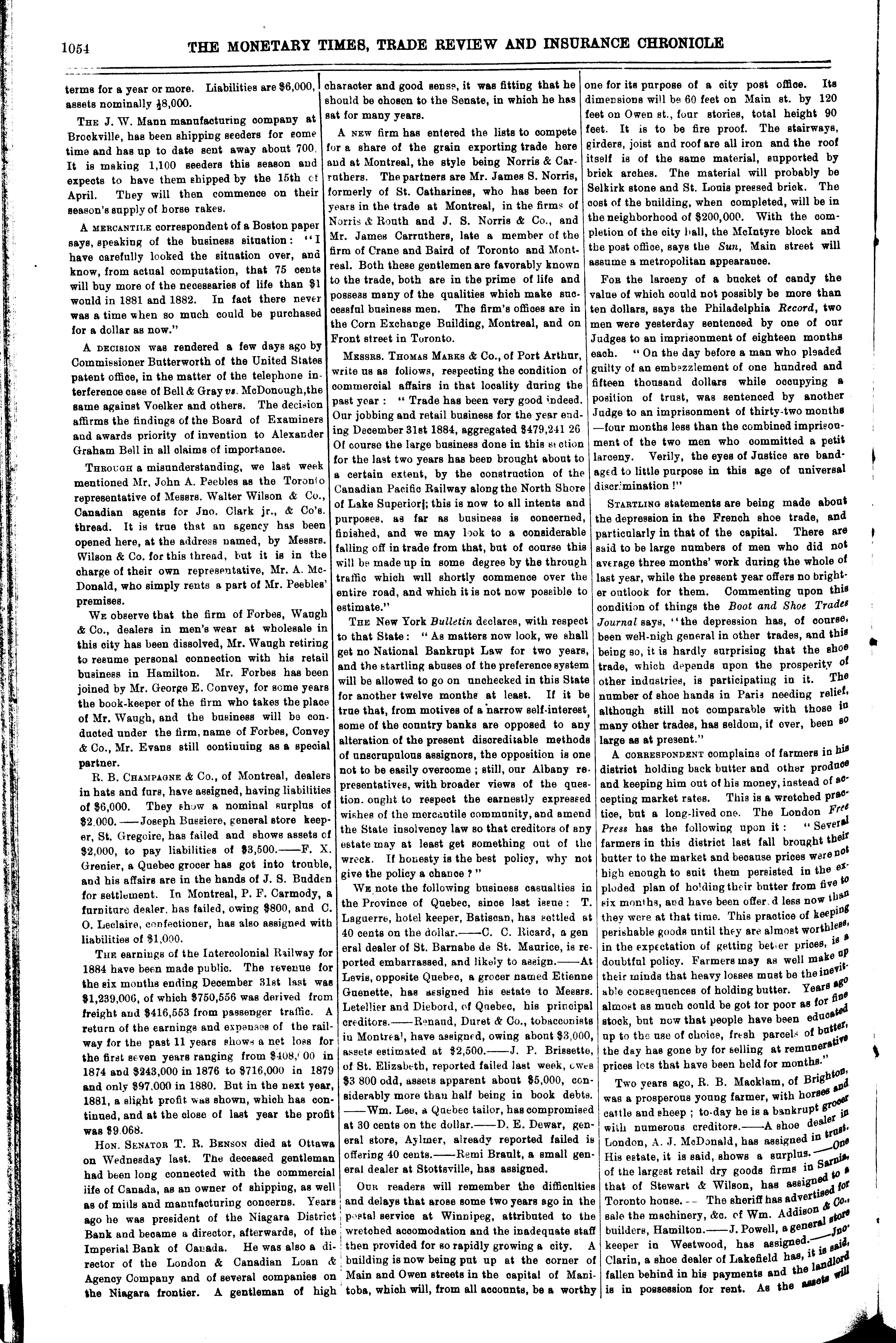 The monetary times, trade review and insurance chronicle : [Vol. 18, no. 38 (Mar. 20, 1885)]