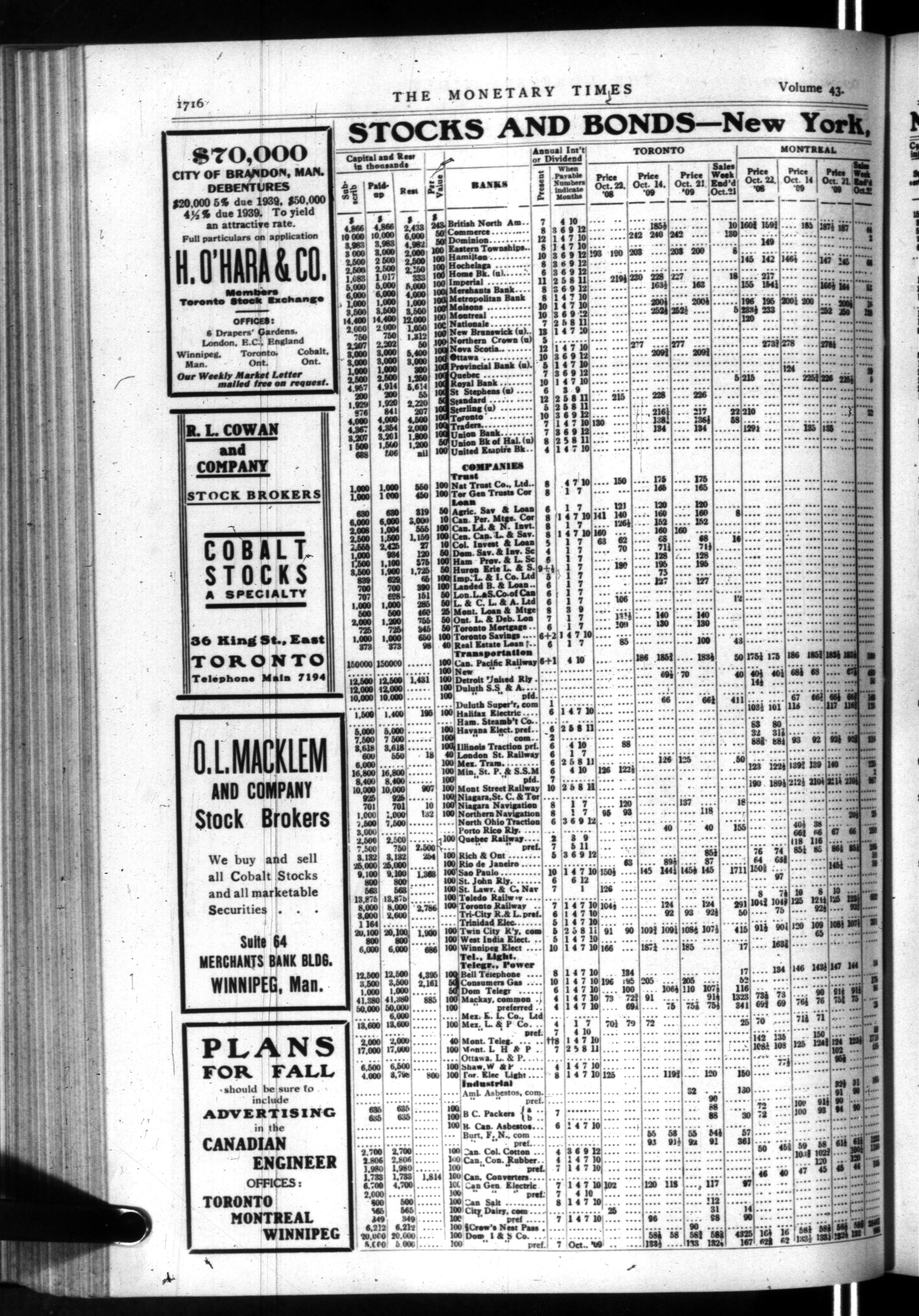 The monetary times, trade review and insurance chronicle : Vol. 43, No. 17 (October 23, 1909)