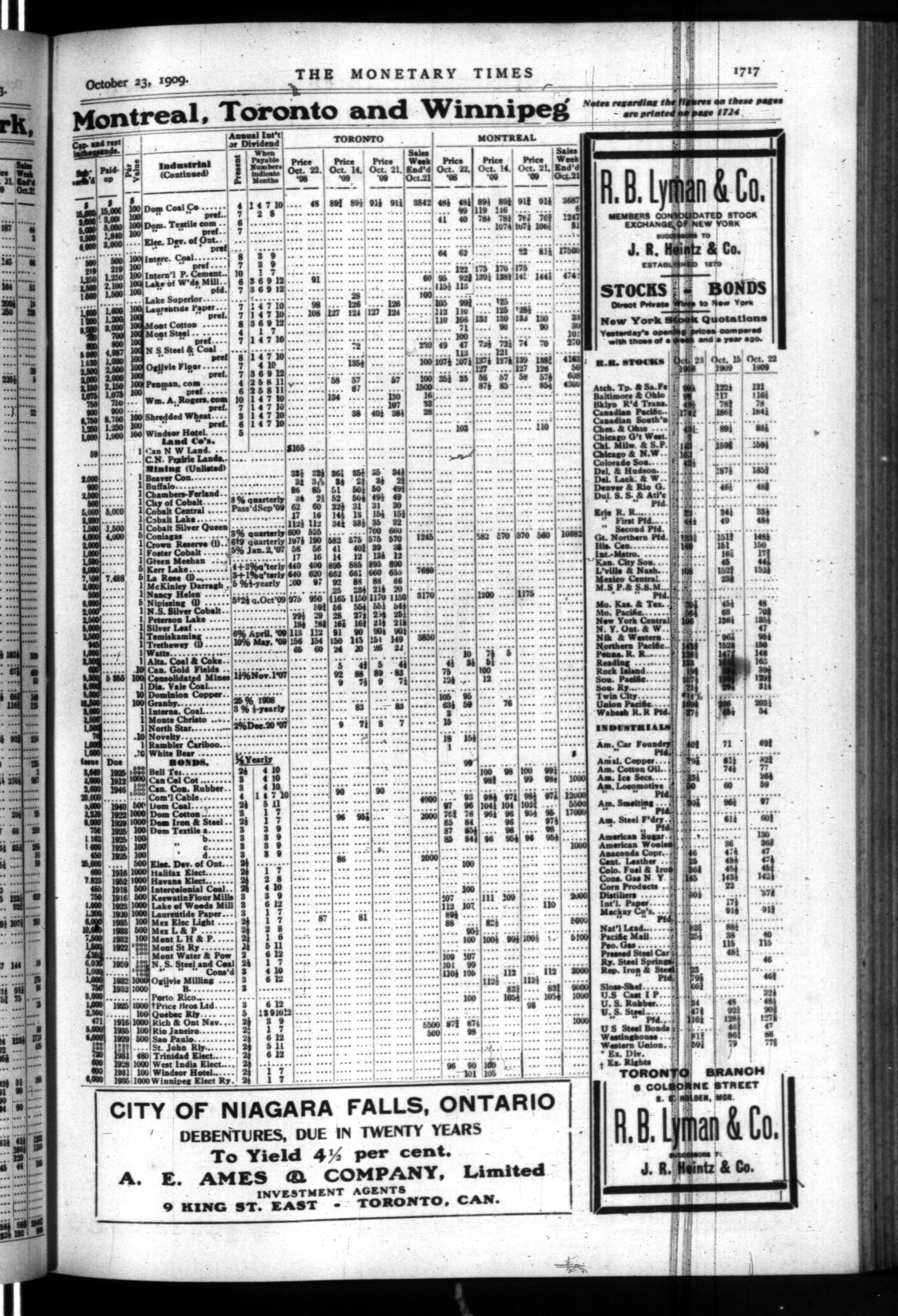 The monetary times, trade review and insurance chronicle : Vol. 43, No. 17 (October 23, 1909)
