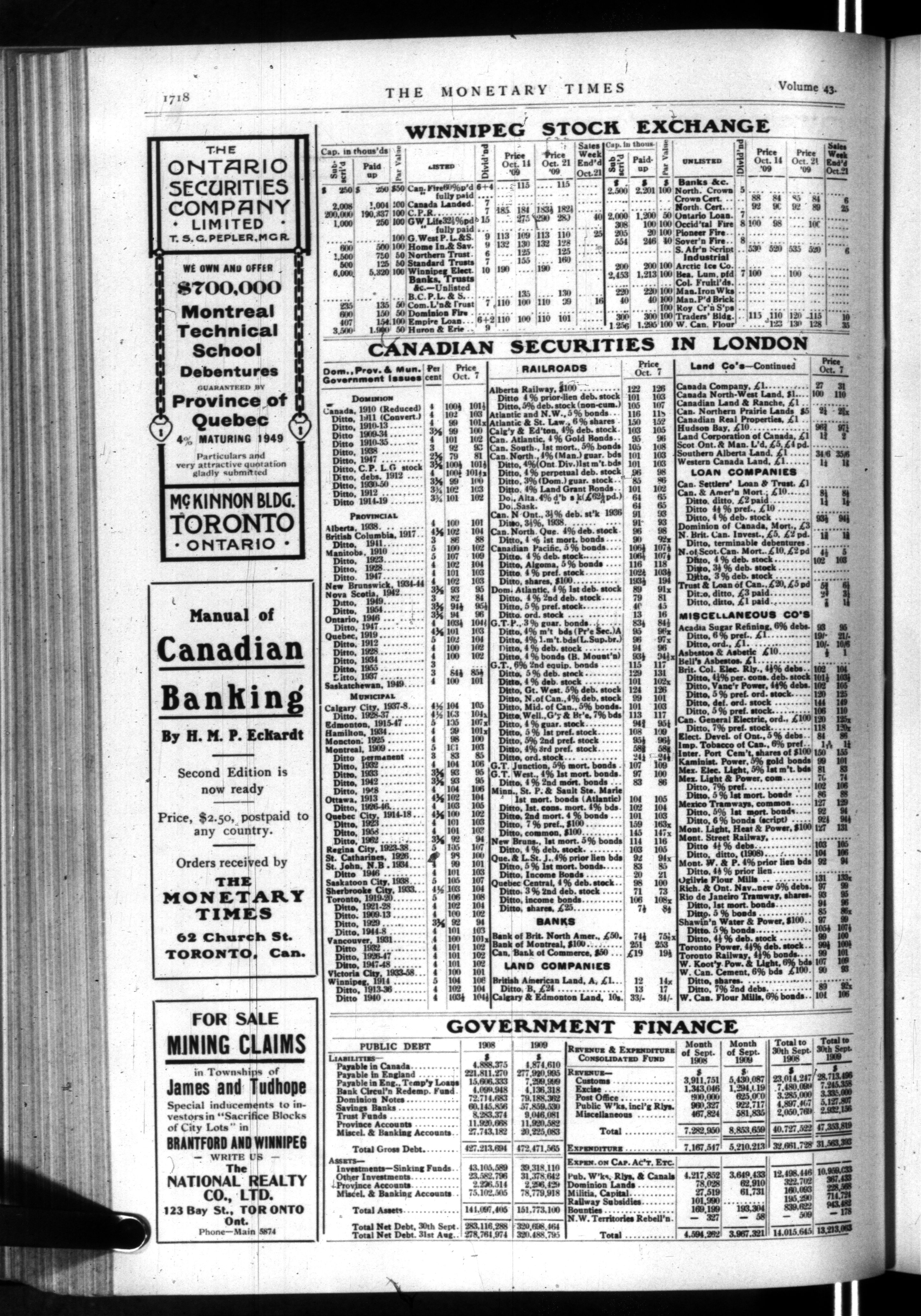 The monetary times, trade review and insurance chronicle : Vol. 43, No. 17 (October 23, 1909)