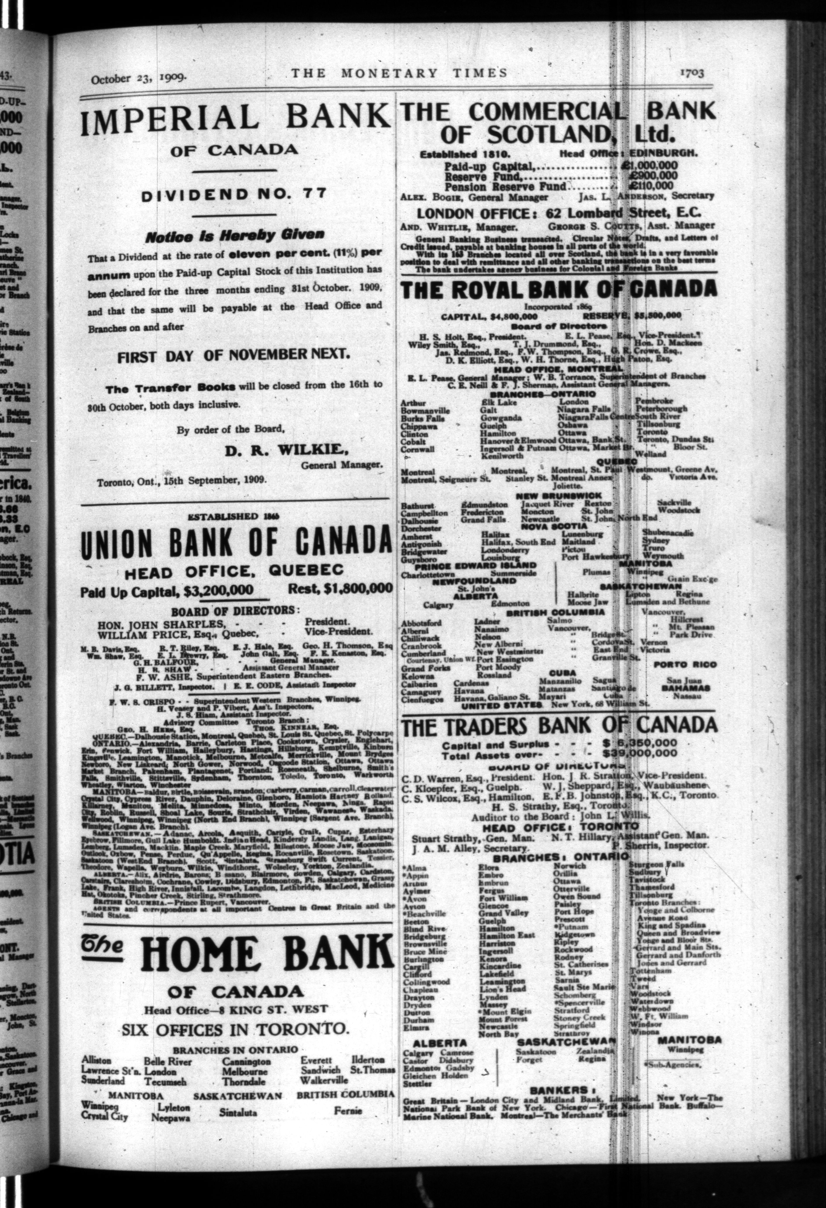 The monetary times, trade review and insurance chronicle : Vol. 43, No. 17 (October 23, 1909)