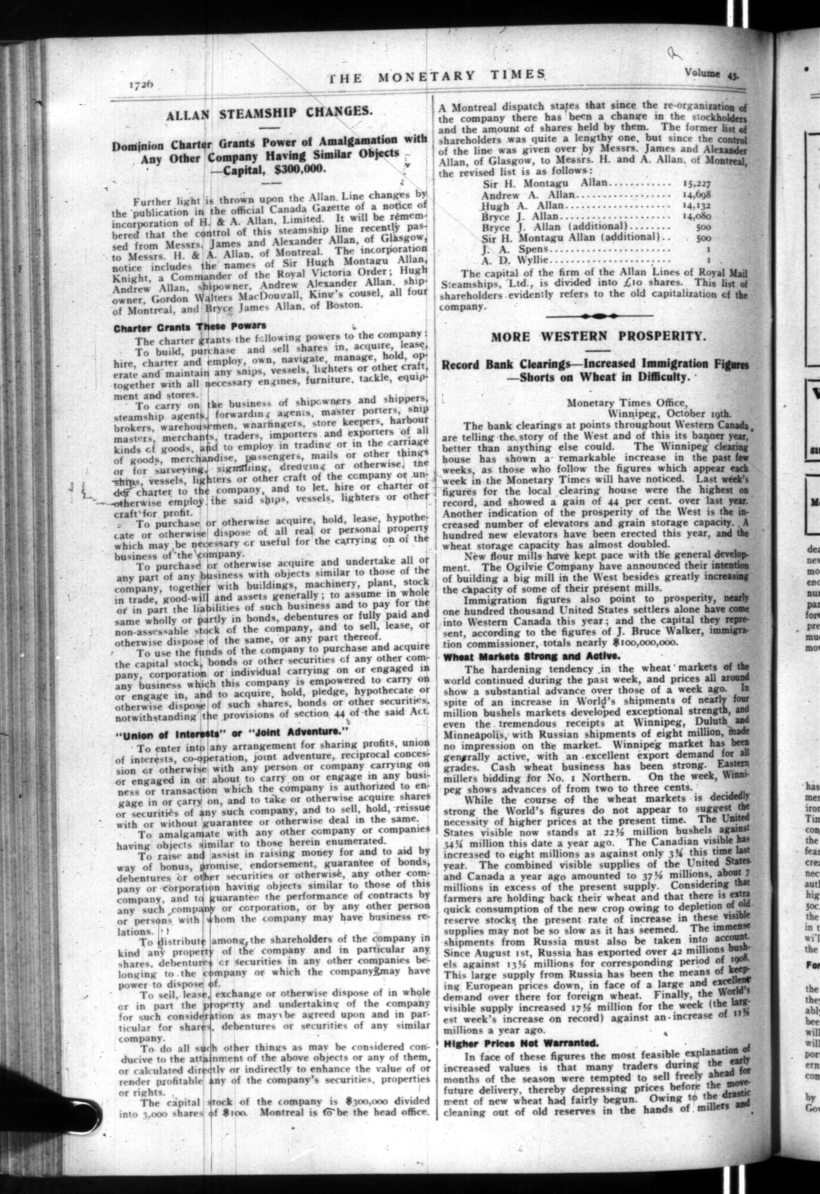 The monetary times, trade review and insurance chronicle : Vol. 43, No. 17 (October 23, 1909)