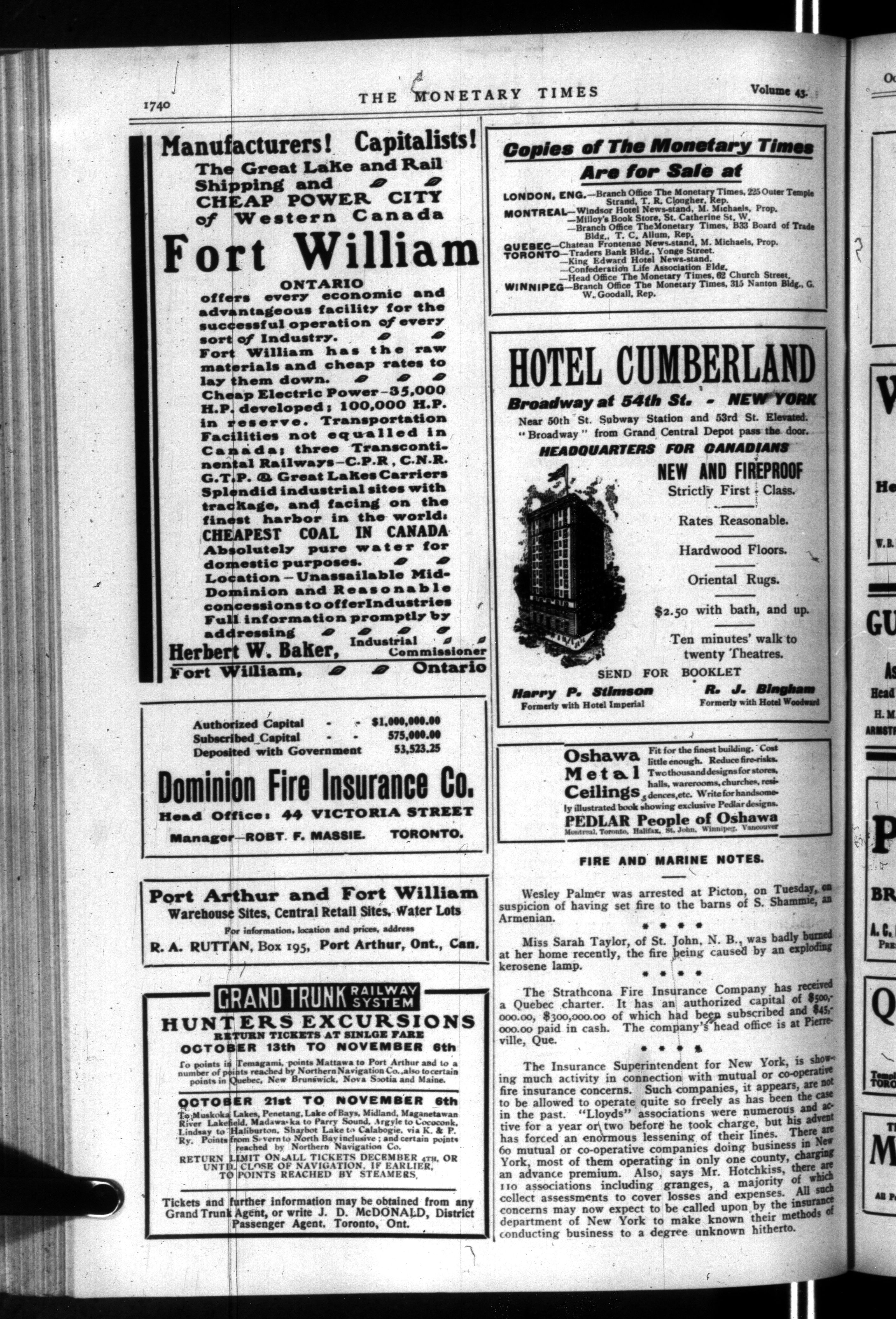 The monetary times, trade review and insurance chronicle : Vol. 43, No. 17 (October 23, 1909)