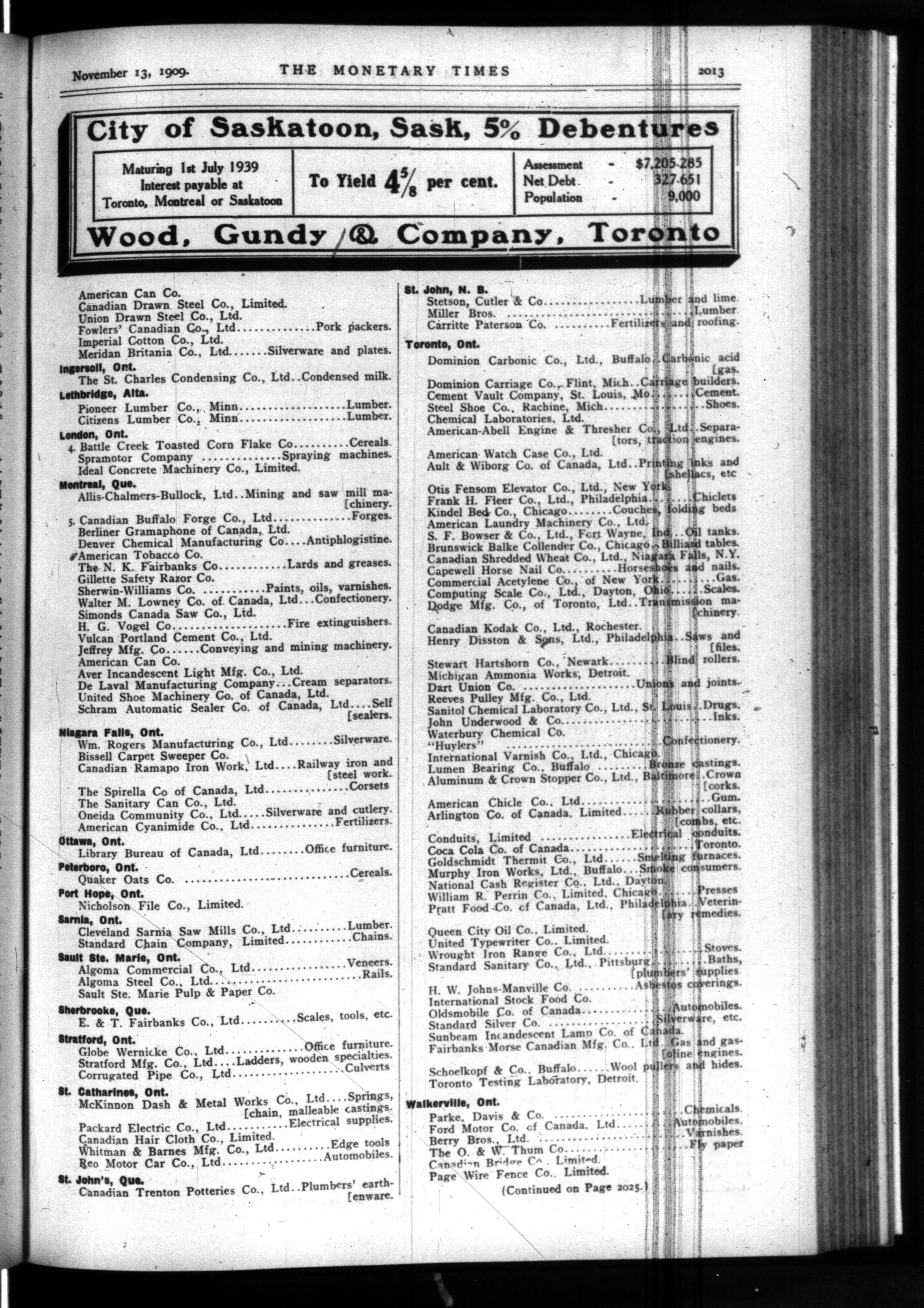 The monetary times, trade review and insurance chronicle : Vol. 43, No. 20 (November 13, 1909)