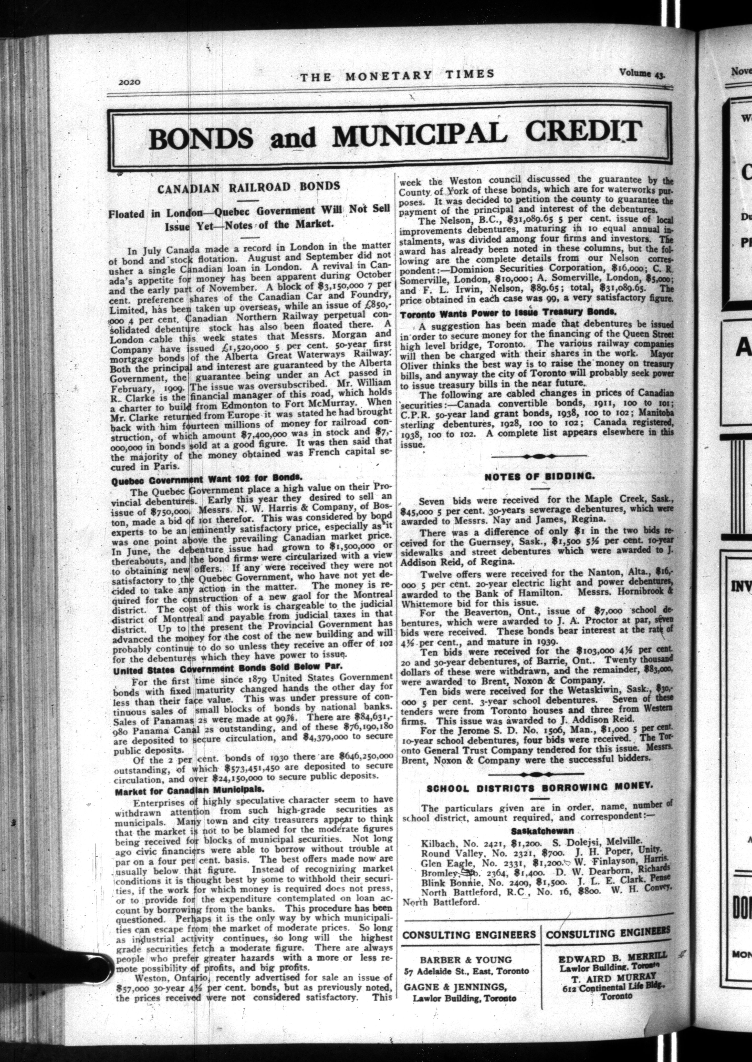 The monetary times, trade review and insurance chronicle : Vol. 43, No. 20 (November 13, 1909)