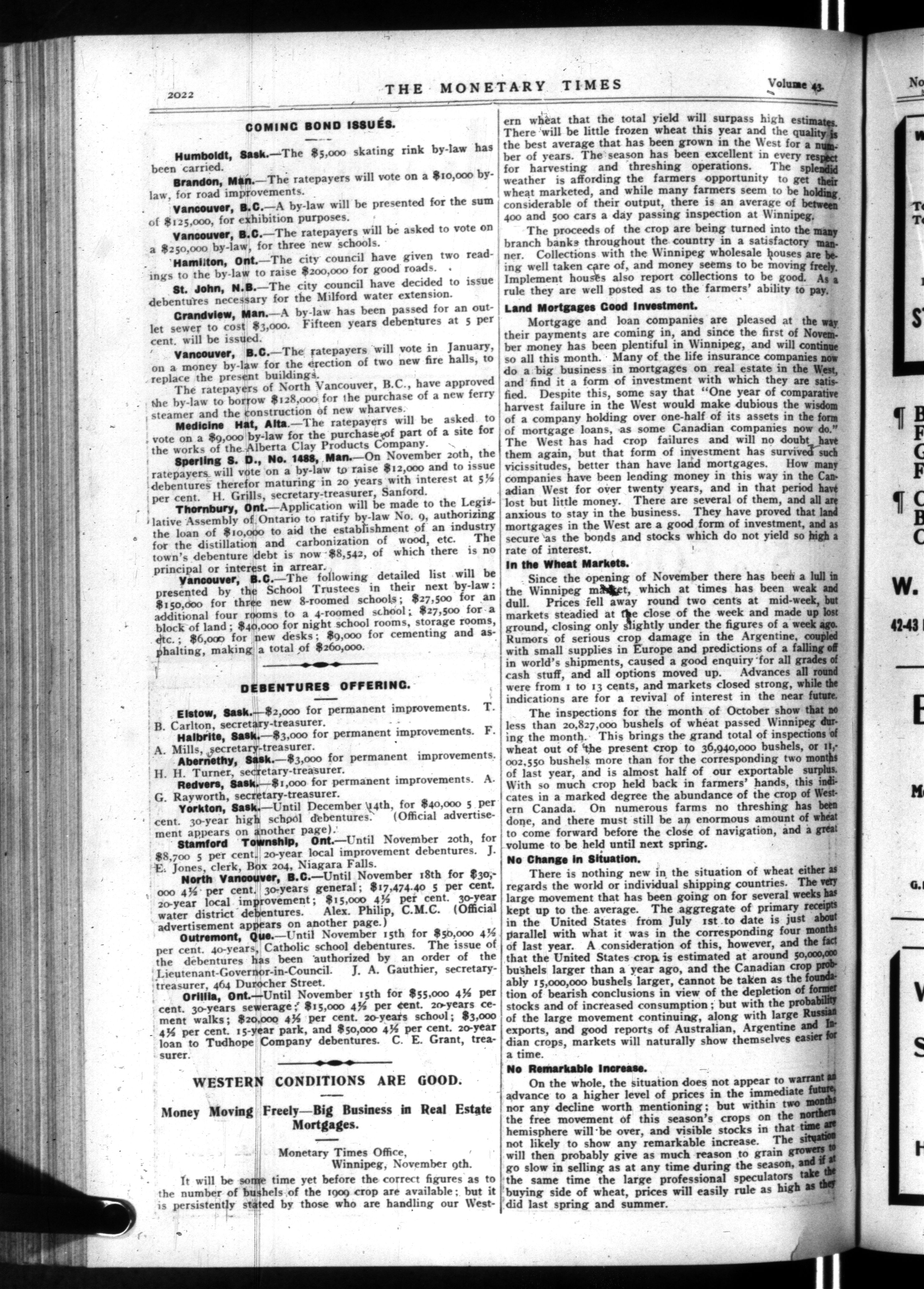 The monetary times, trade review and insurance chronicle : Vol. 43, No. 20 (November 13, 1909)
