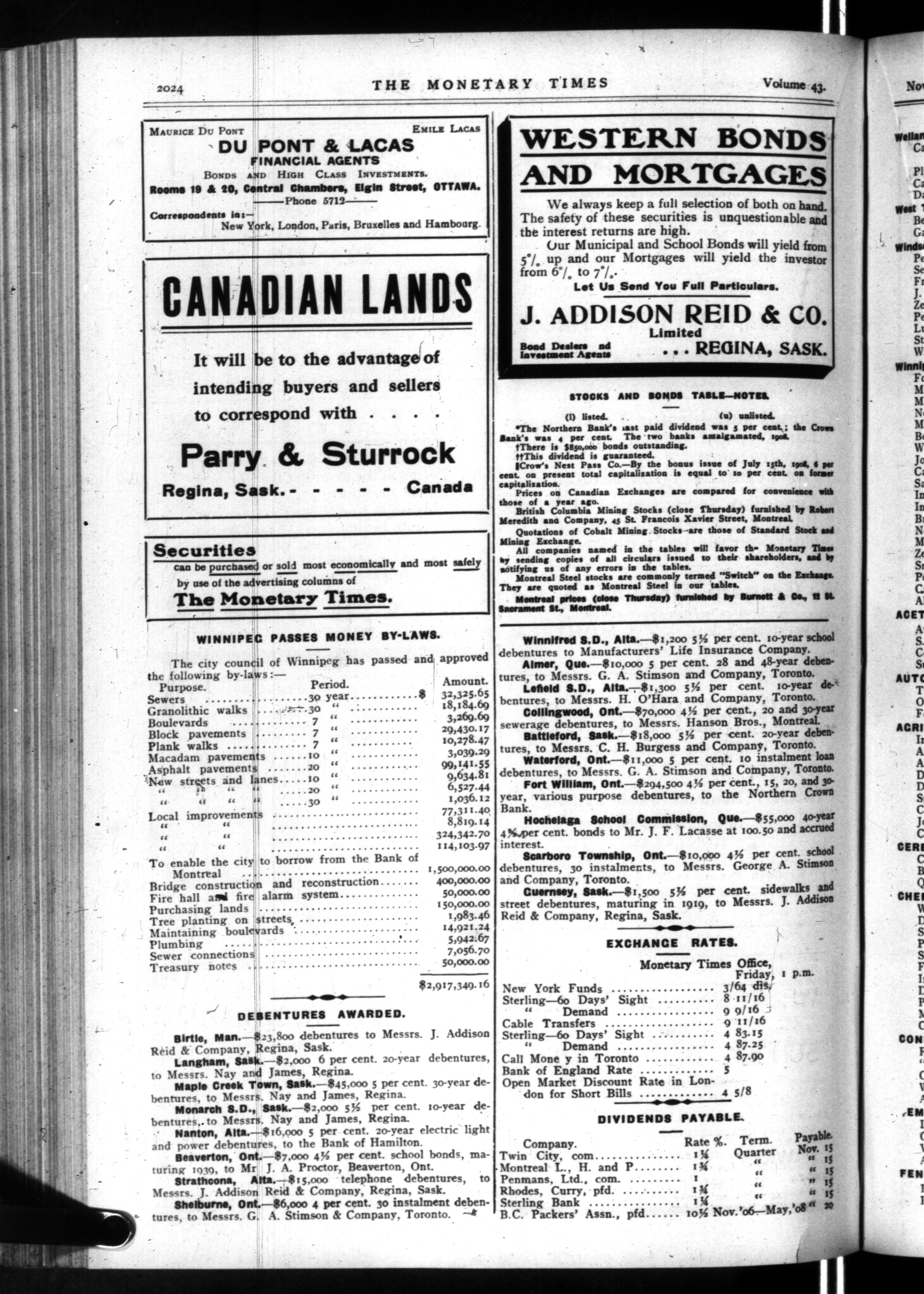 The monetary times, trade review and insurance chronicle : Vol. 43, No. 20 (November 13, 1909)