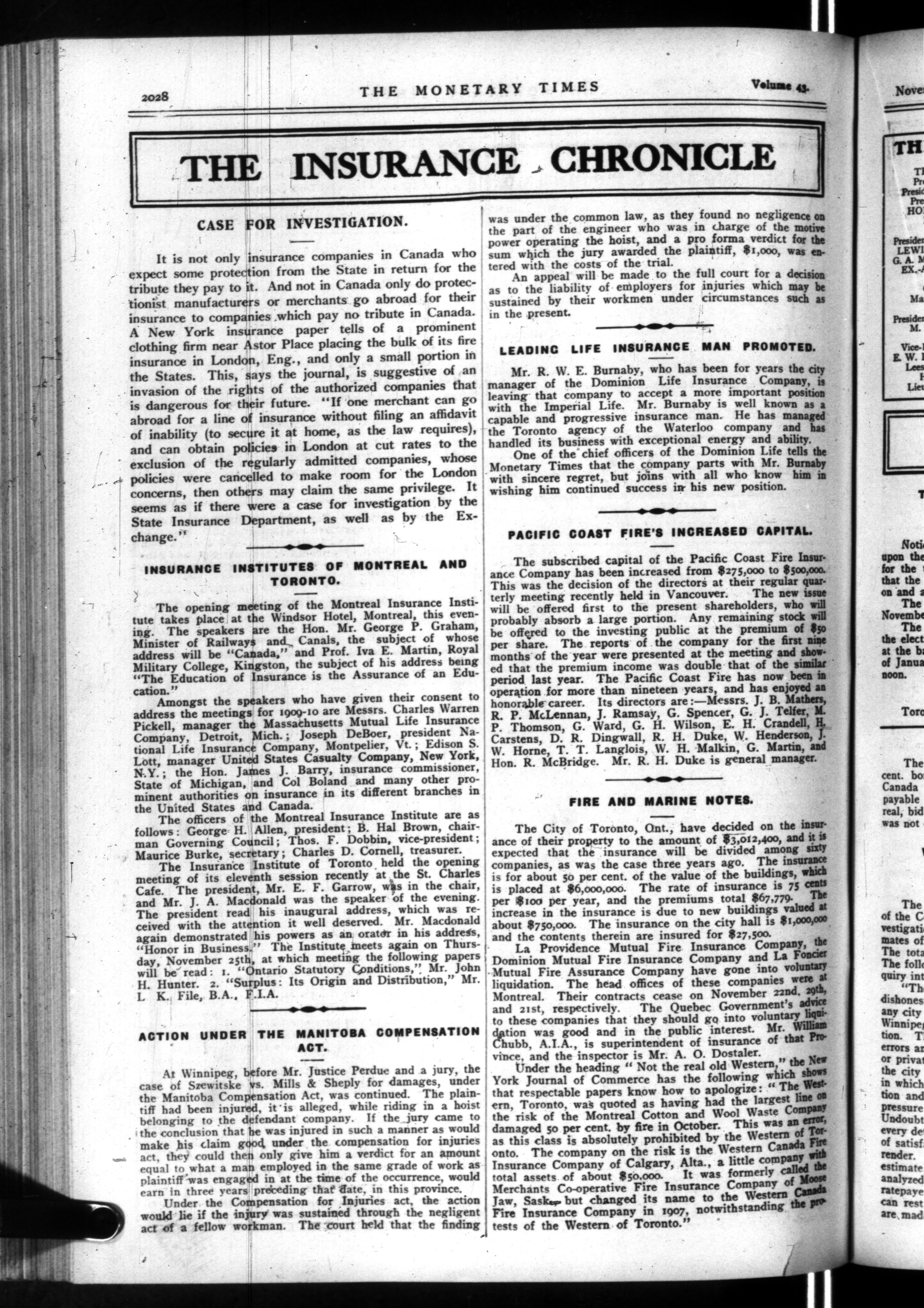 The monetary times, trade review and insurance chronicle : Vol. 43, No. 20 (November 13, 1909)