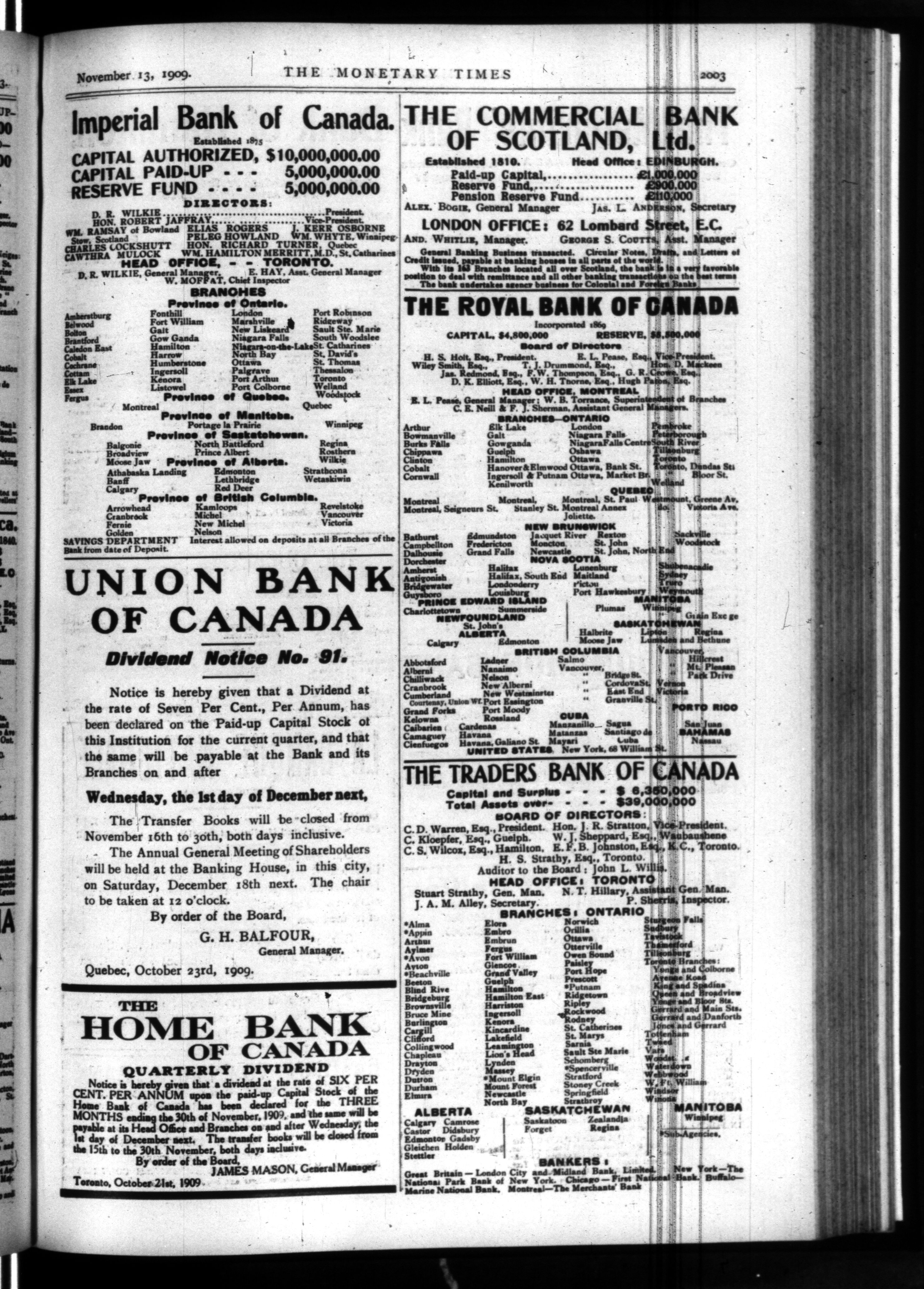 The monetary times, trade review and insurance chronicle : Vol. 43, No. 20 (November 13, 1909)