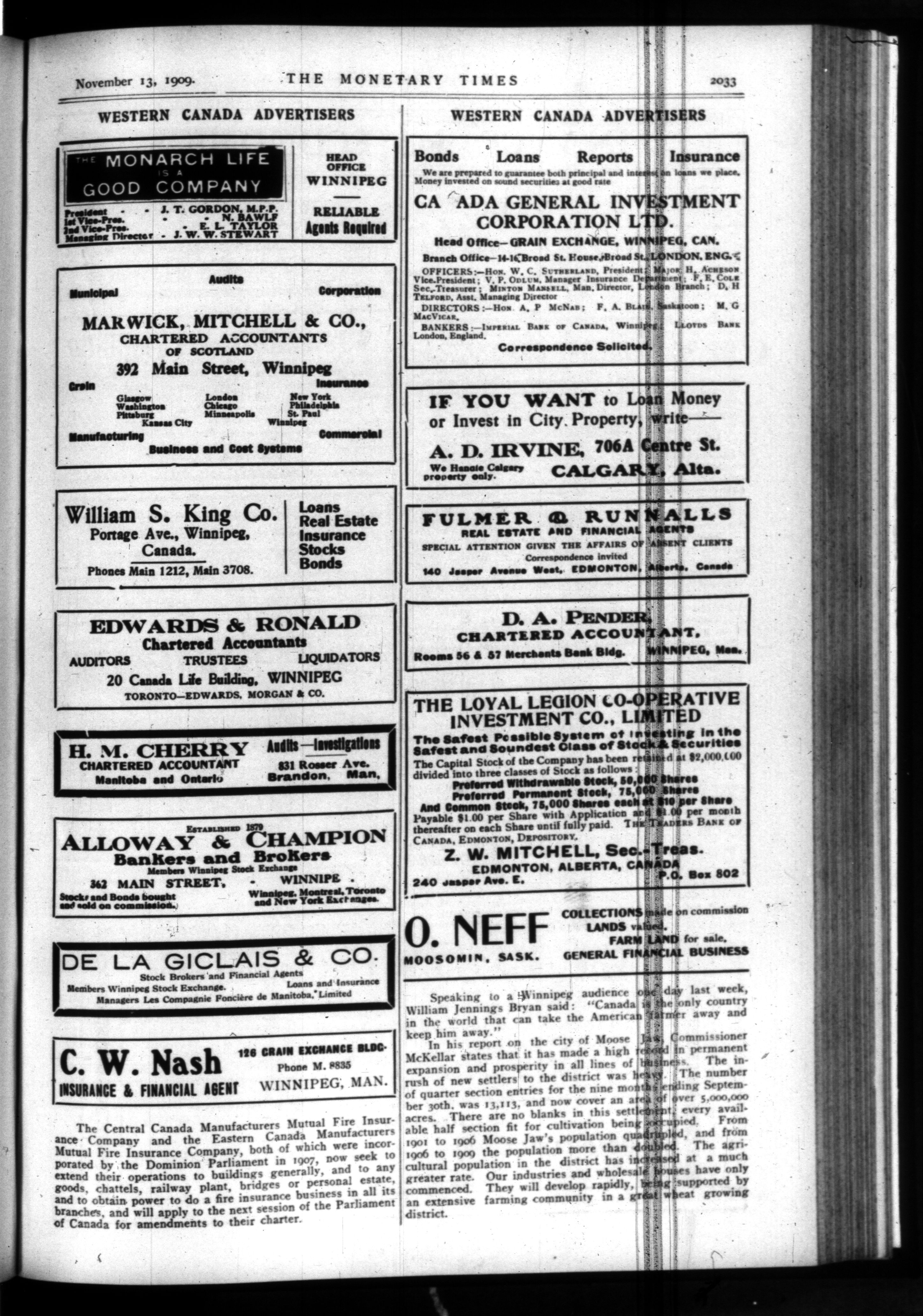 The monetary times, trade review and insurance chronicle : Vol. 43, No. 20 (November 13, 1909)