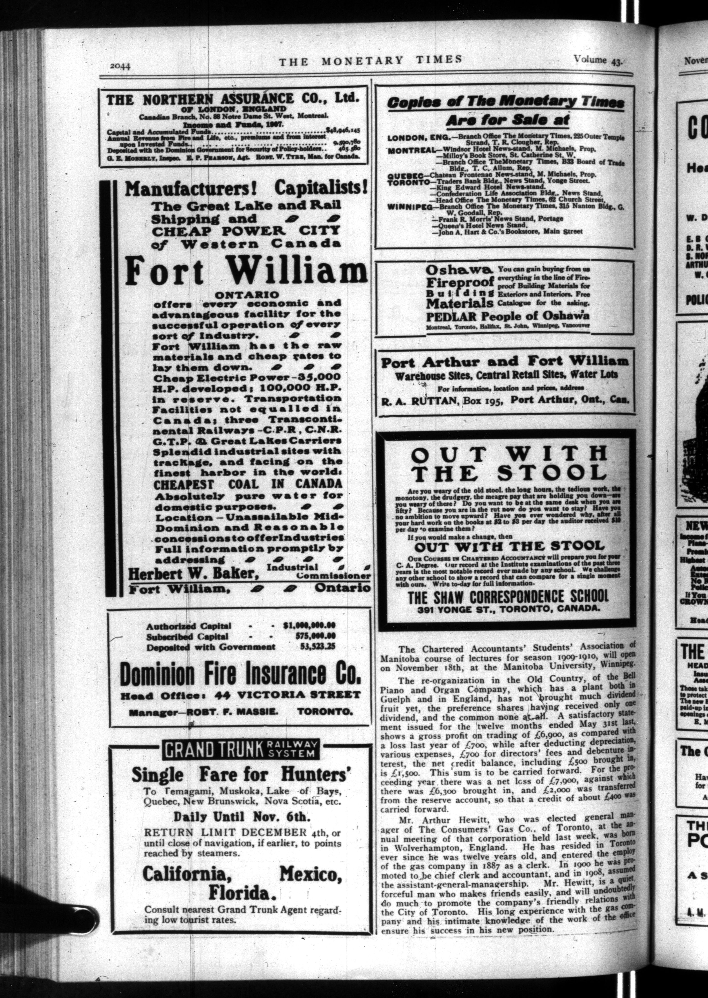 The monetary times, trade review and insurance chronicle : Vol. 43, No. 20 (November 13, 1909)