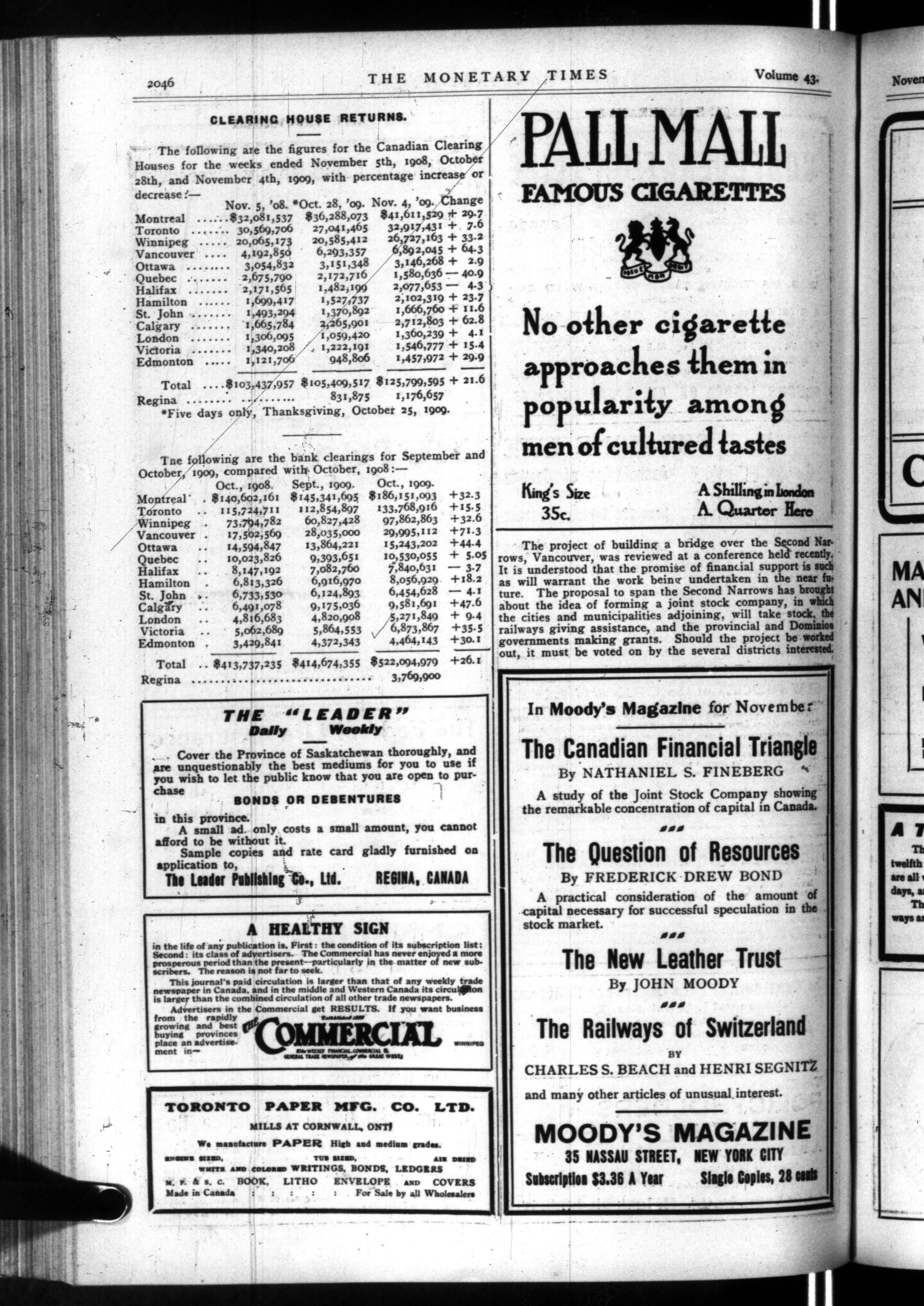 The monetary times, trade review and insurance chronicle : Vol. 43, No. 20 (November 13, 1909)