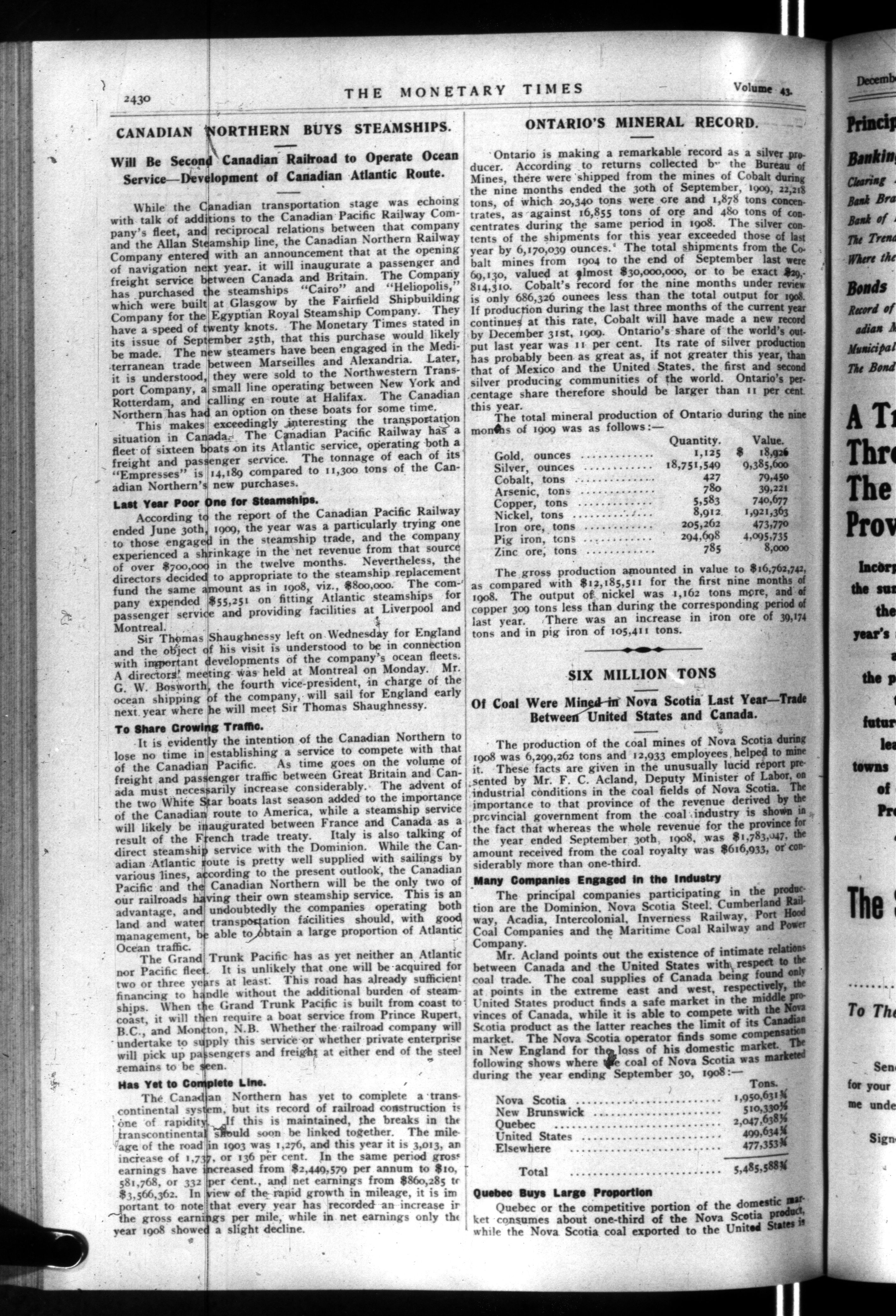 The monetary times, trade review and insurance chronicle : Vol. 43, No. 24 (Decemer 11, 1909)