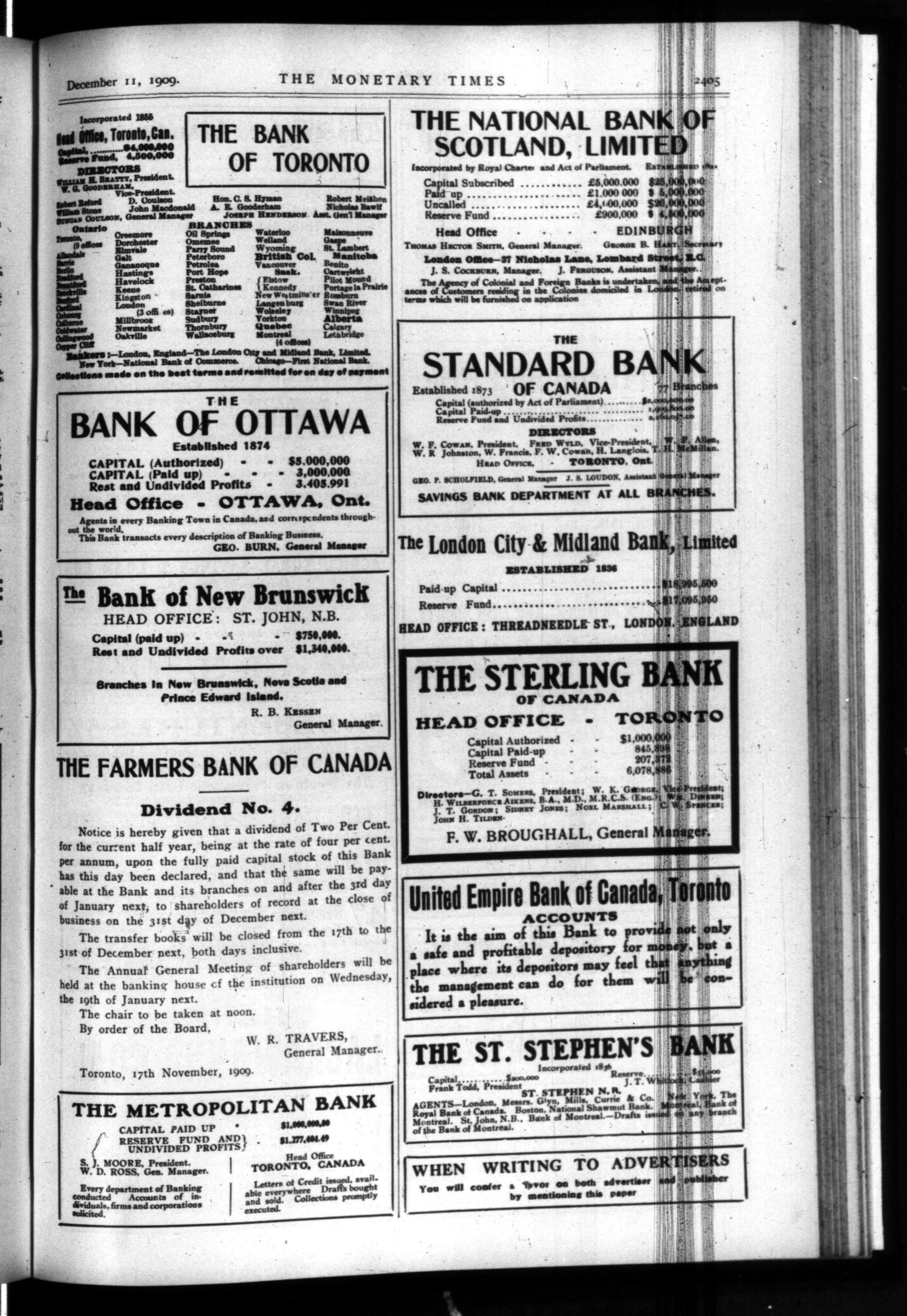 The monetary times, trade review and insurance chronicle : Vol. 43, No. 24 (Decemer 11, 1909)