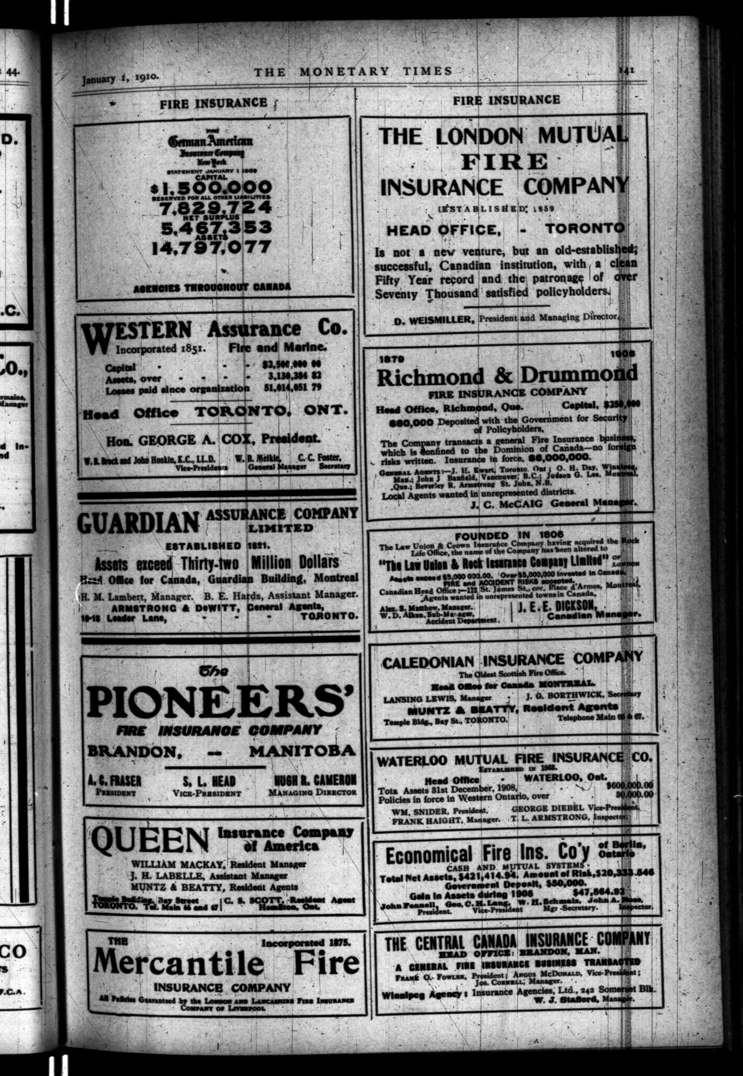 The monetary times, trade review and insurance chronicle : Vol. 44, No. 1 (Januay 1, 1910)