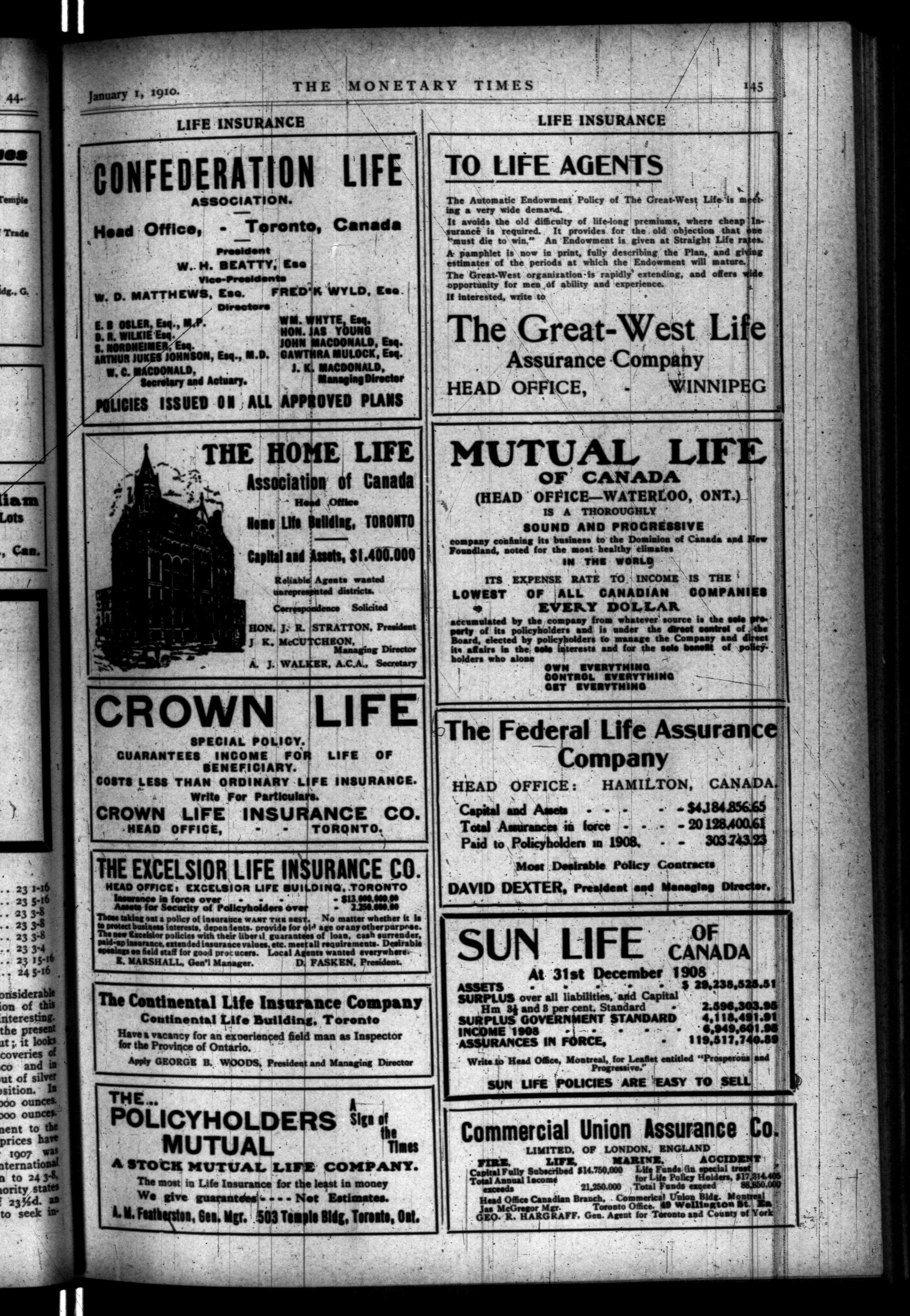 The monetary times, trade review and insurance chronicle : Vol. 44, No. 1 (Januay 1, 1910)