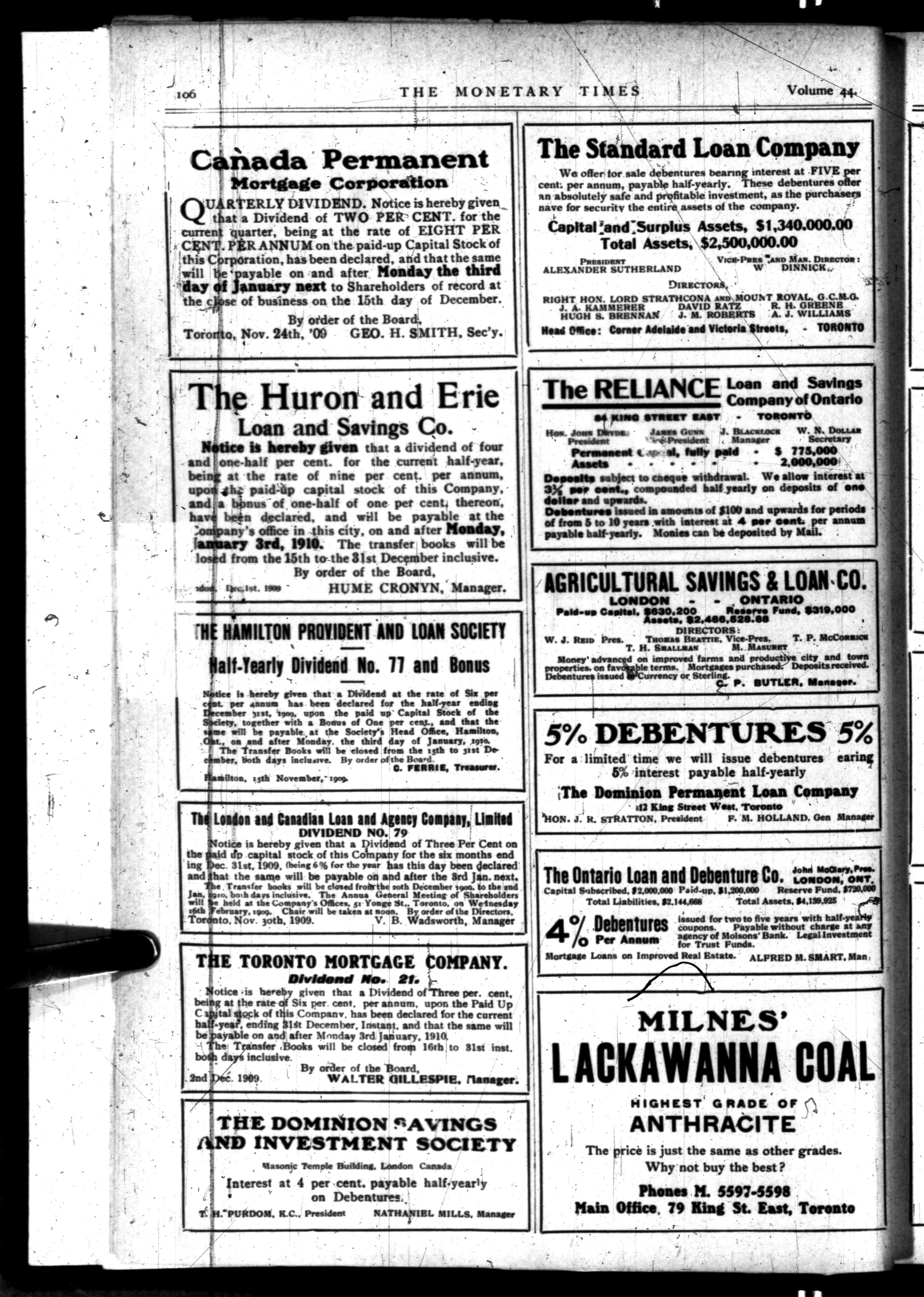 The monetary times, trade review and insurance chronicle : Vol. 44, No. 1 (Januay 1, 1910)