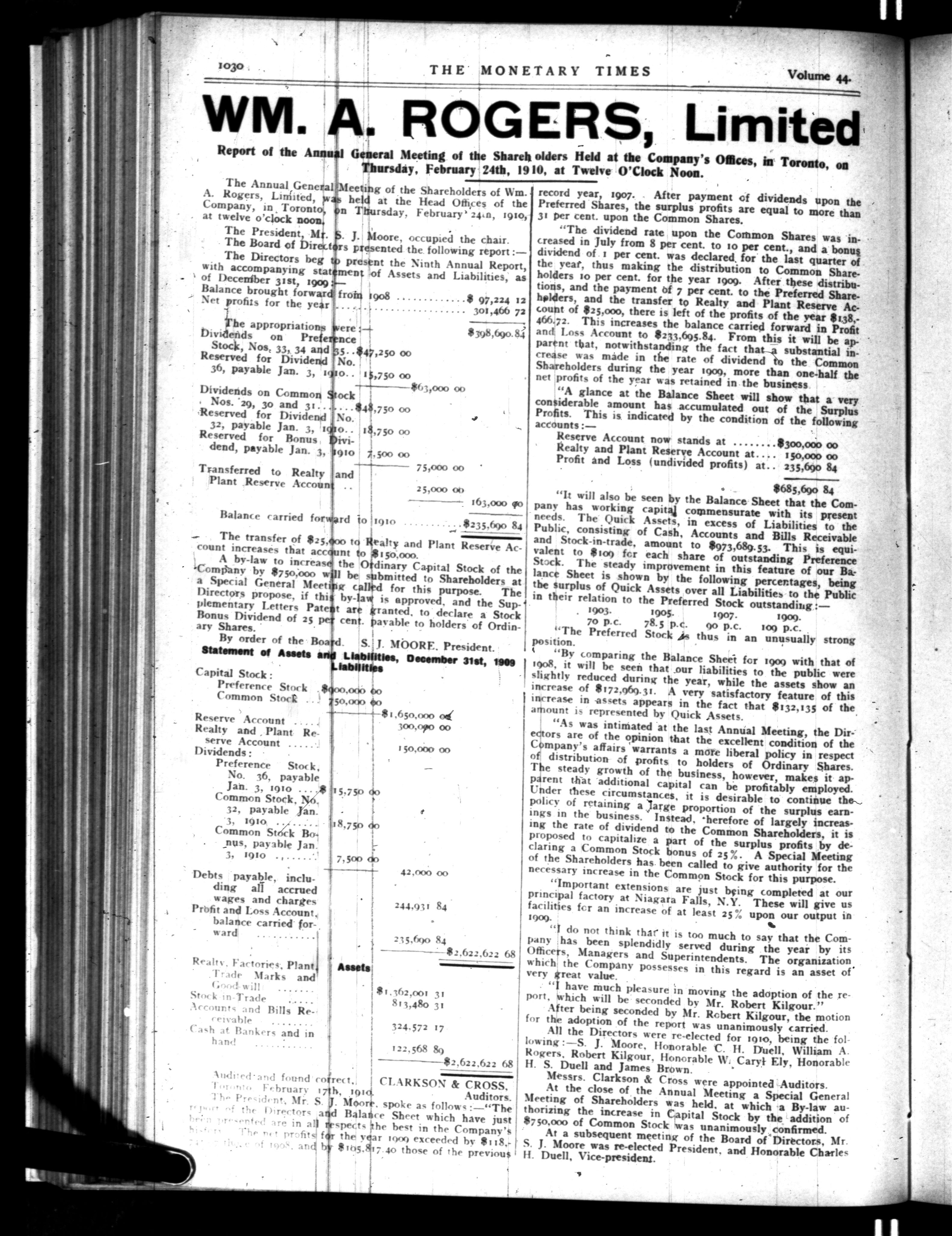 The monetary times, trade review and insurance chronicle : Vol. 44, No. 10 (March 5, 1910)