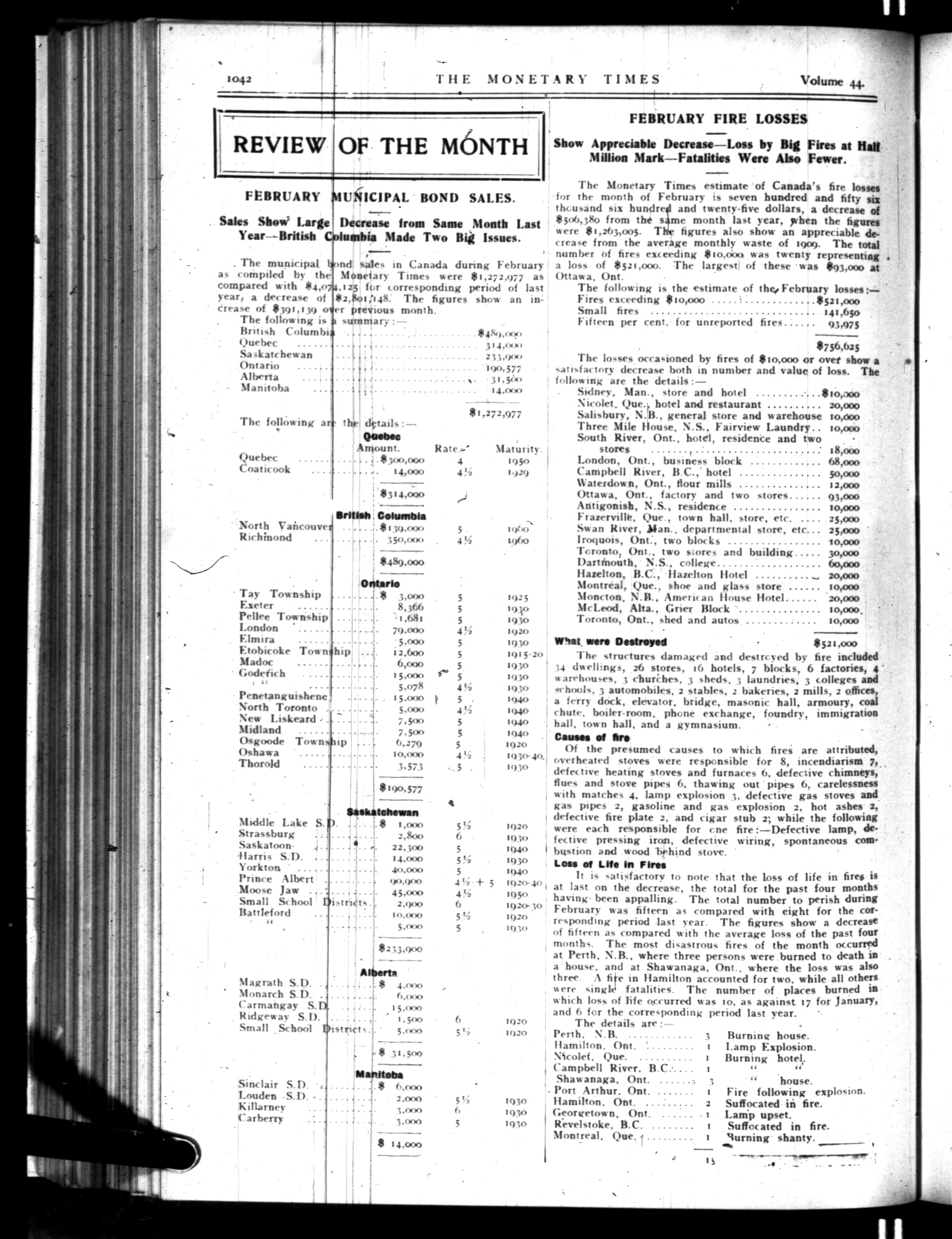 The monetary times, trade review and insurance chronicle : Vol. 44, No. 10 (March 5, 1910)