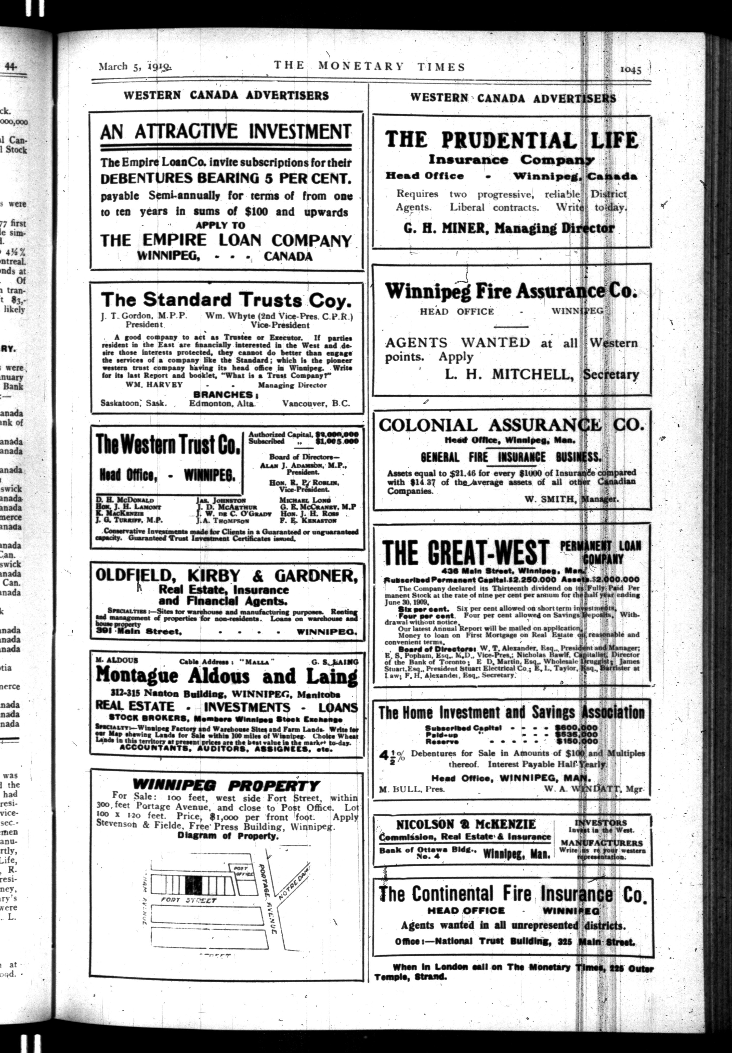 The monetary times, trade review and insurance chronicle : Vol. 44, No. 10 (March 5, 1910)
