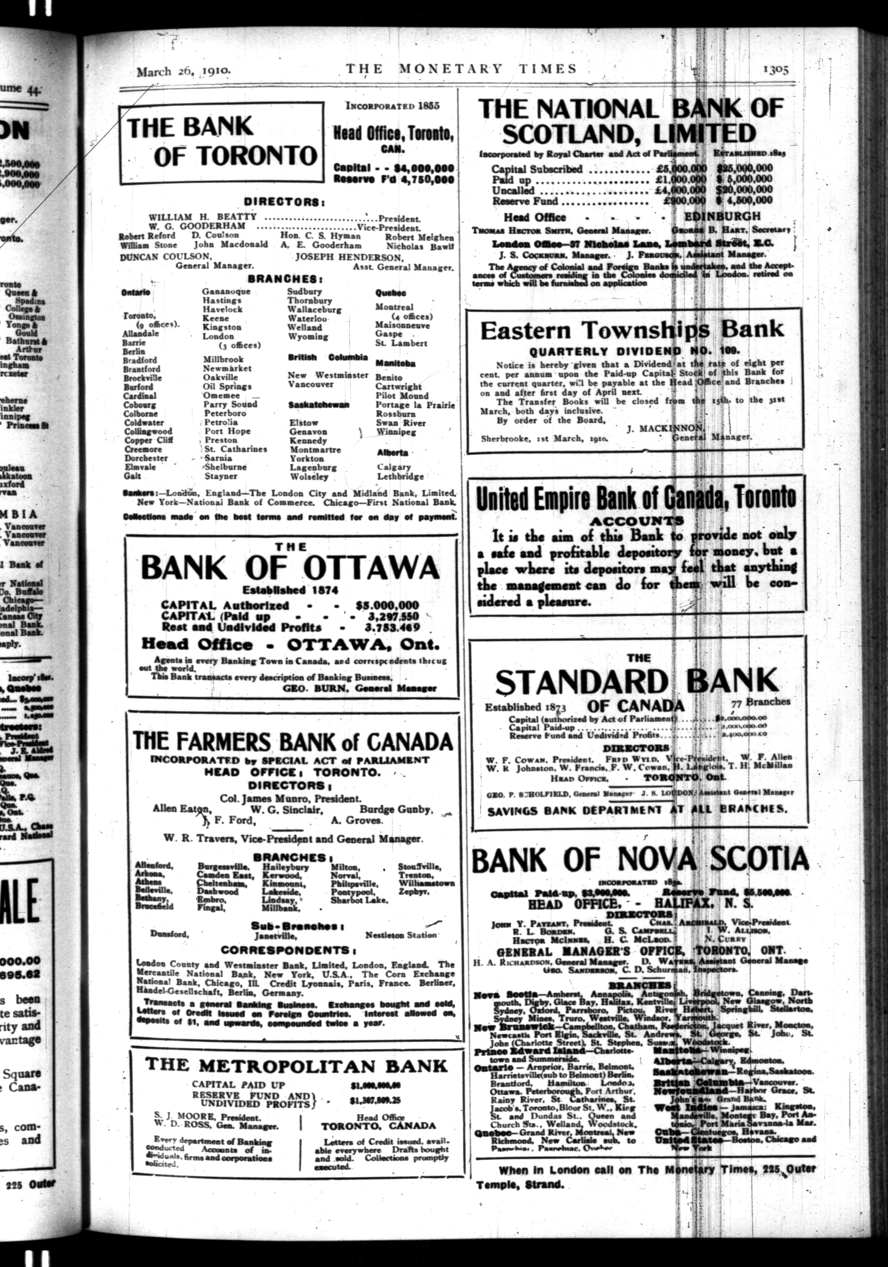 The monetary times, trade review and insurance chronicle : Vol. 44, No. 13 (March 26, 1910)
