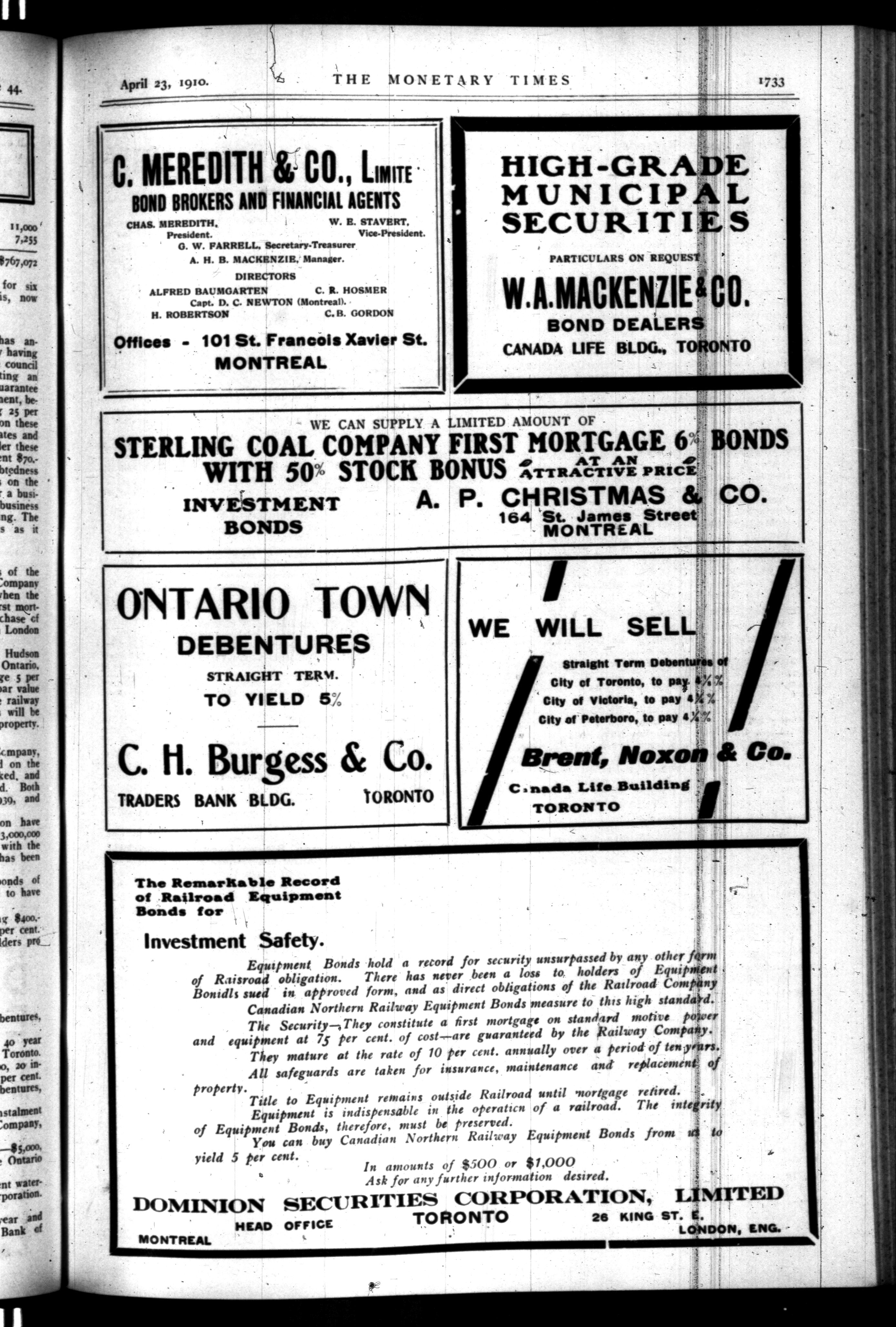 The monetary times, trade review and insurance chronicle : Vol. 44, No. 17 (April 23, 1910)