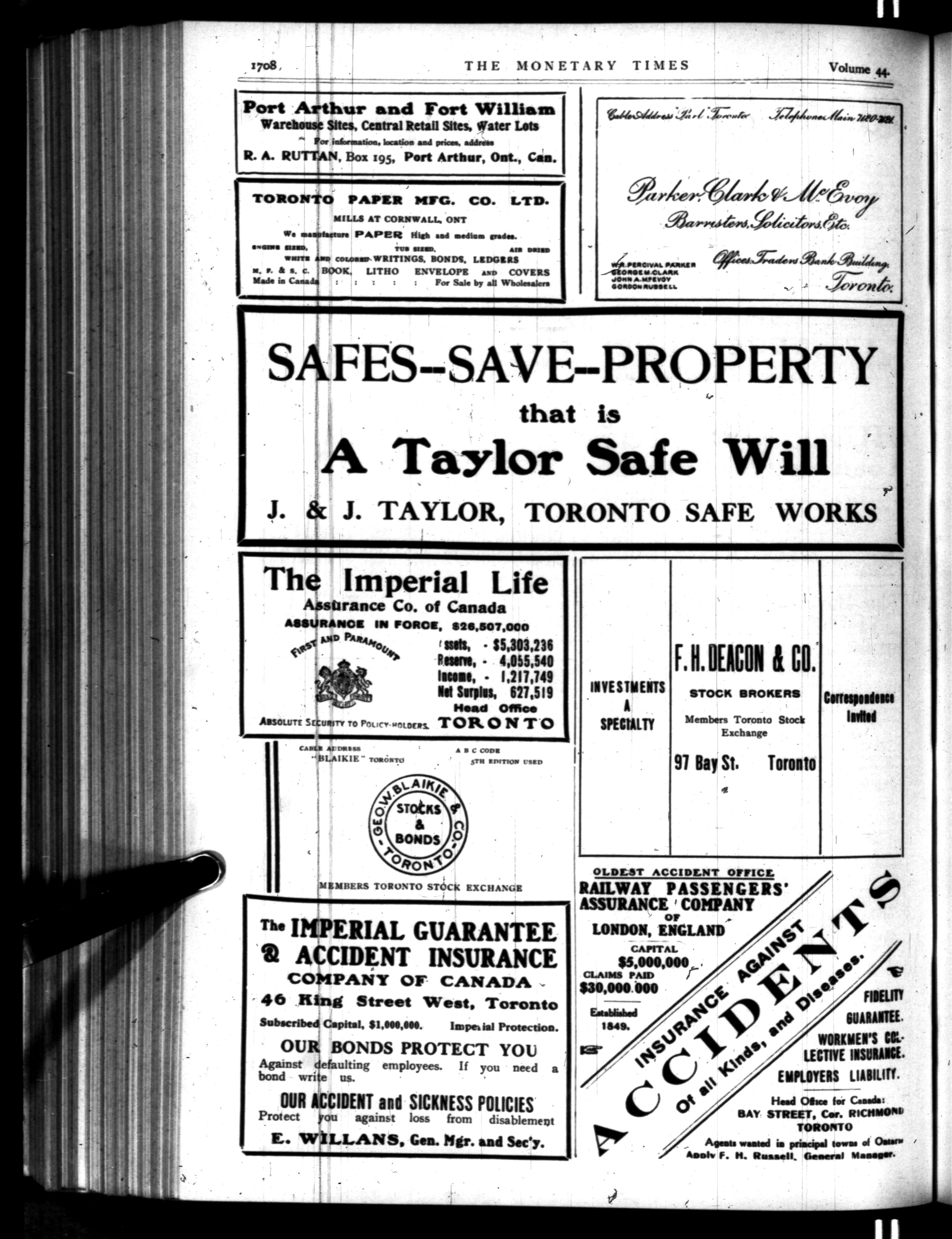 The monetary times, trade review and insurance chronicle : Vol. 44, No. 17 (April 23, 1910)