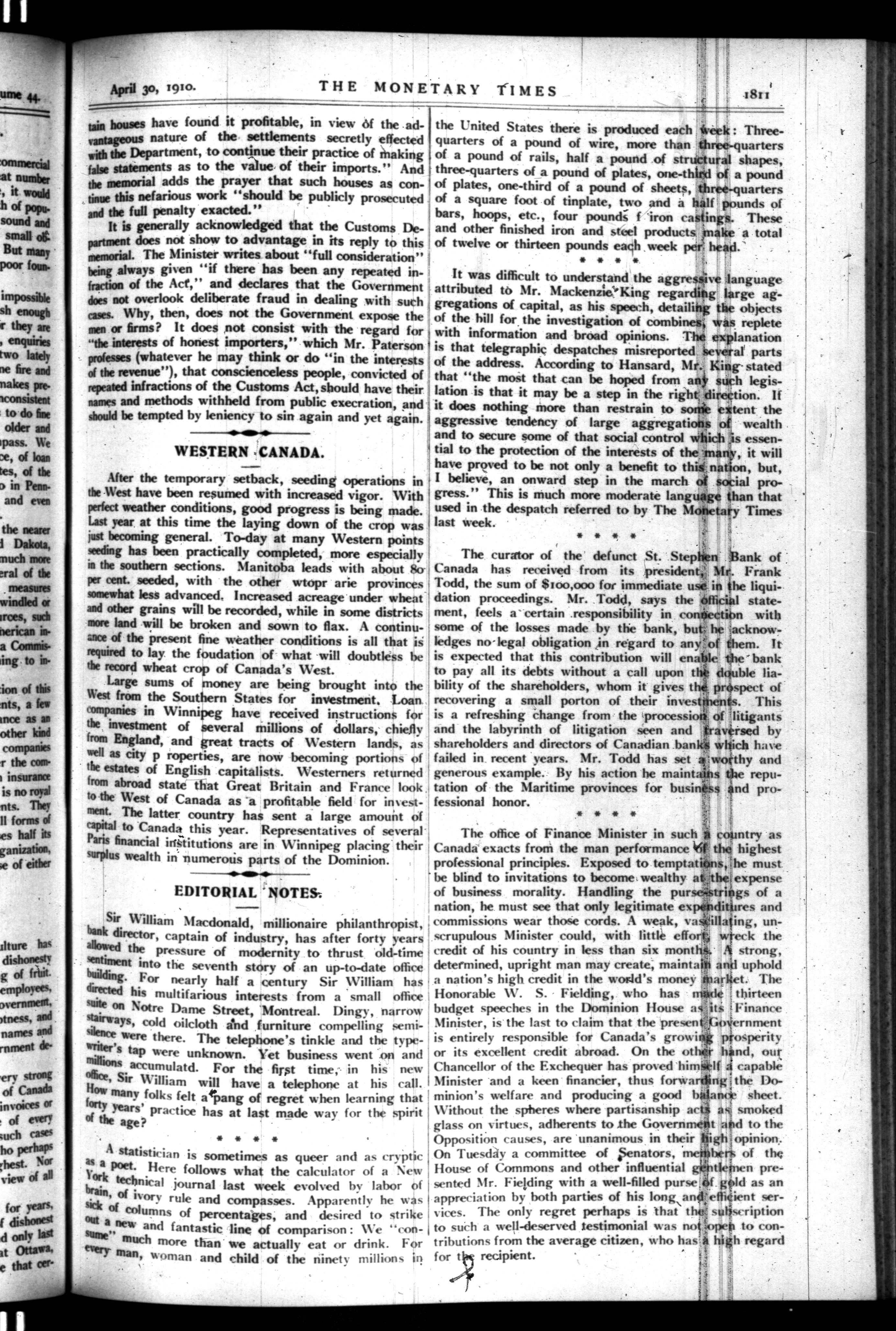 The monetary times, trade review and insurance chronicle : Vol. 44, No. 18 (April 30, 1910)