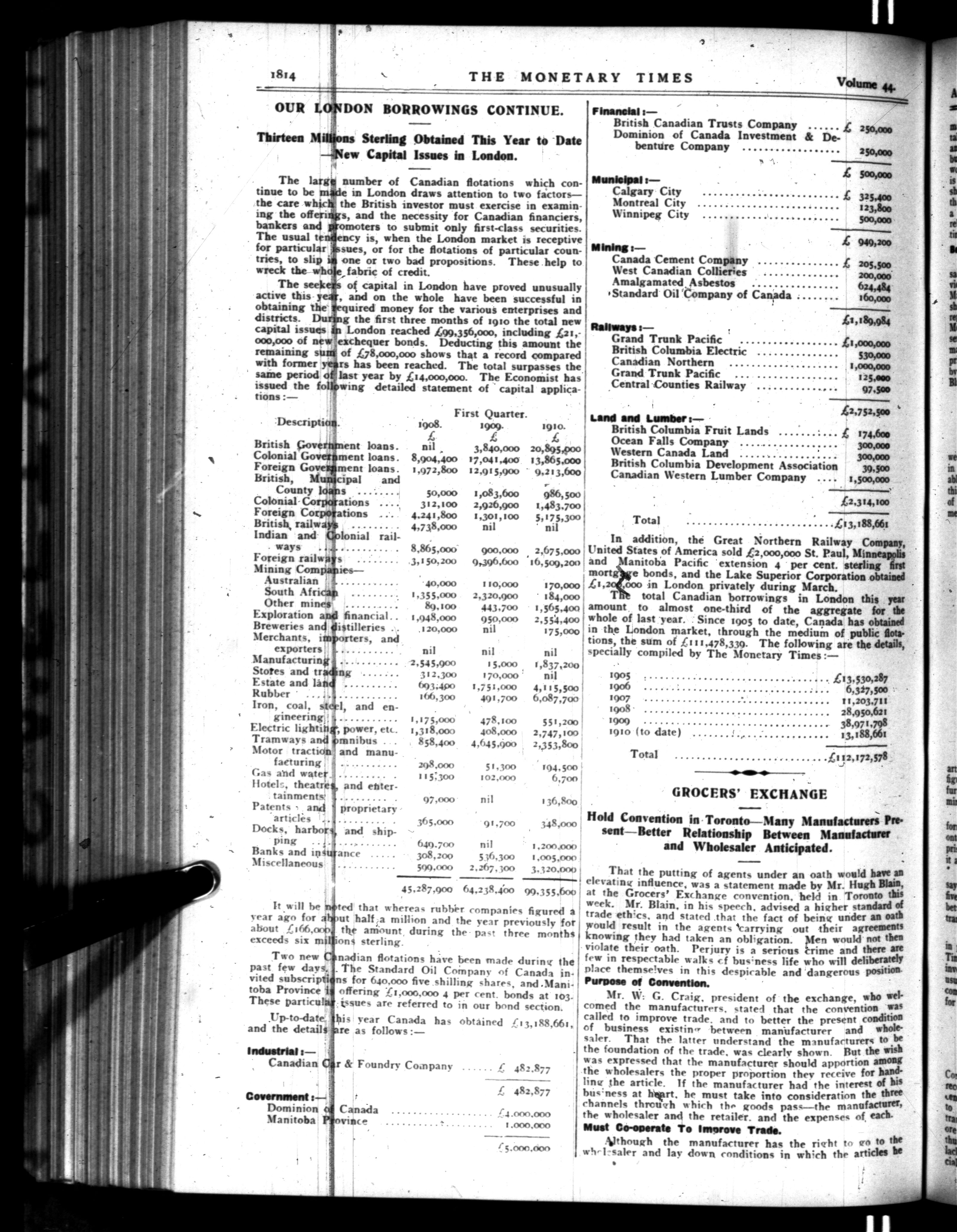 The monetary times, trade review and insurance chronicle : Vol. 44, No. 18 (April 30, 1910)