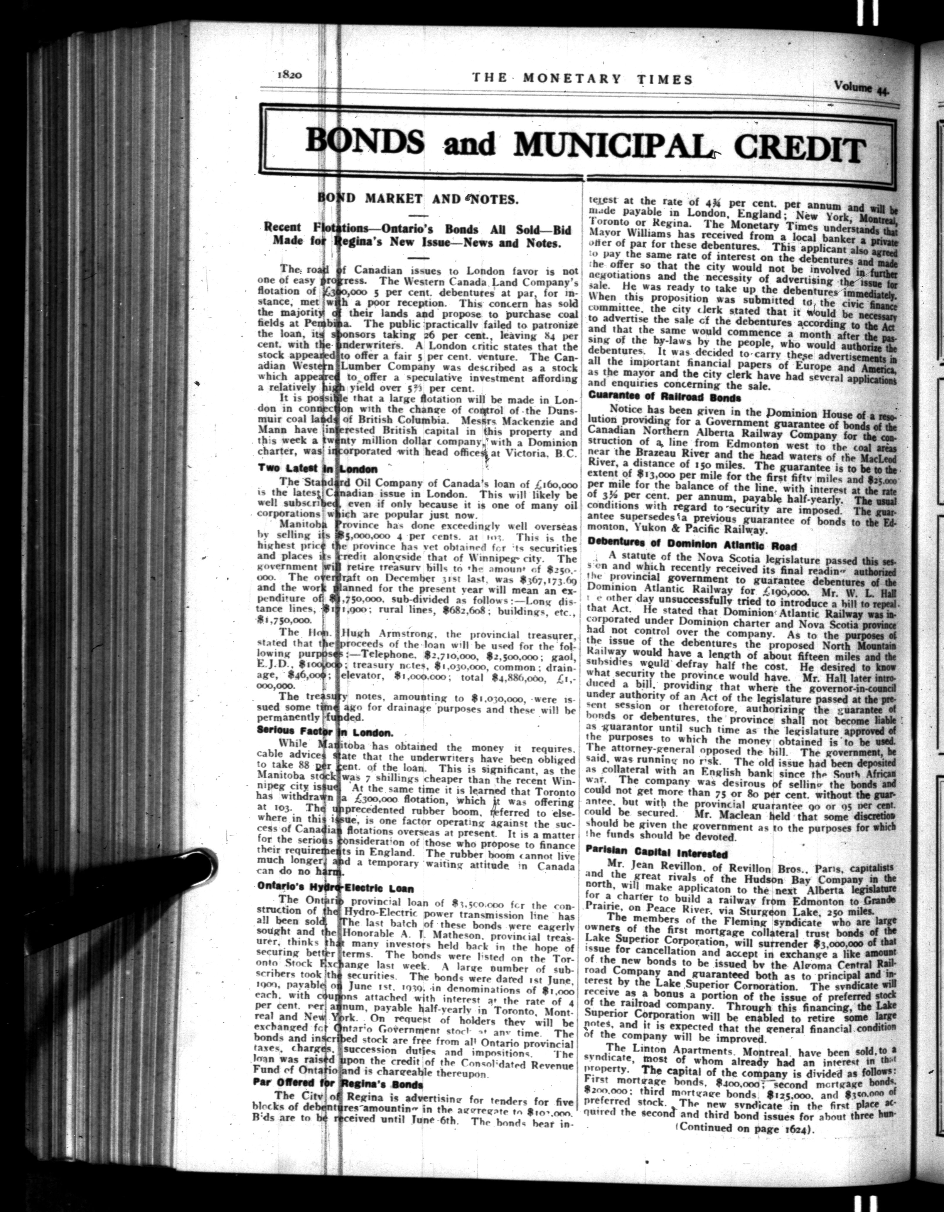 The monetary times, trade review and insurance chronicle : Vol. 44, No. 18 (April 30, 1910)