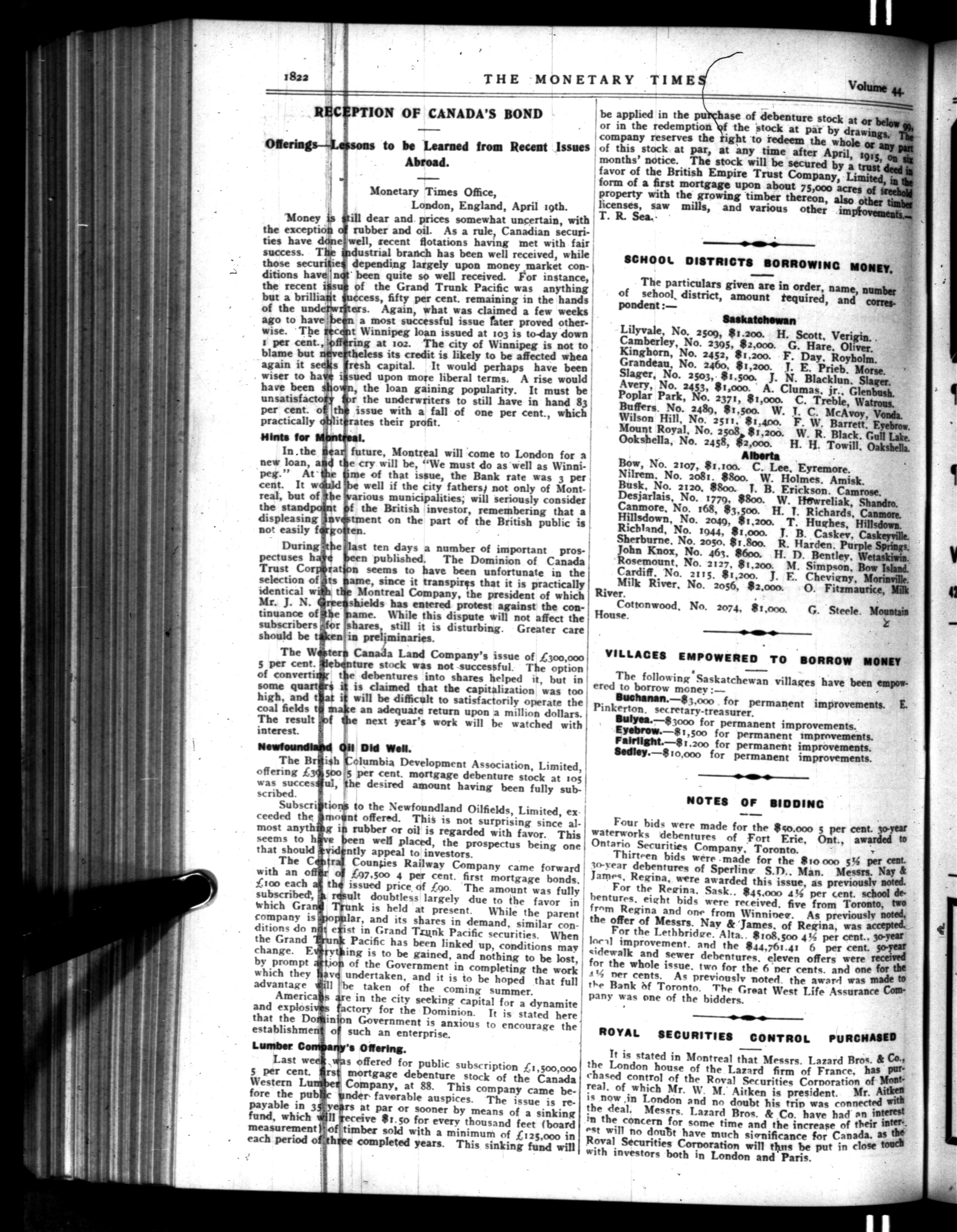 The monetary times, trade review and insurance chronicle : Vol. 44, No. 18 (April 30, 1910)