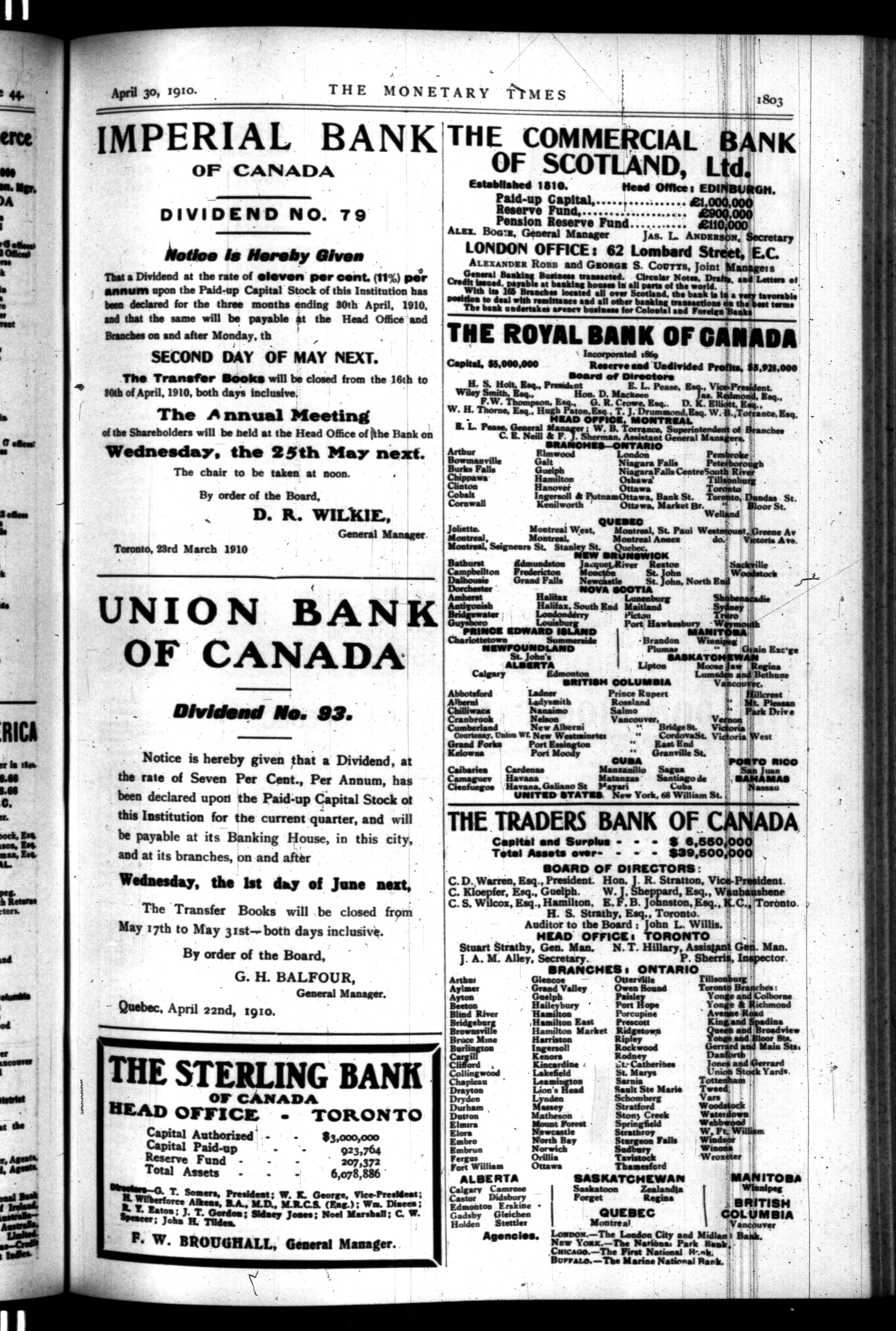 The monetary times, trade review and insurance chronicle : Vol. 44, No. 18 (April 30, 1910)