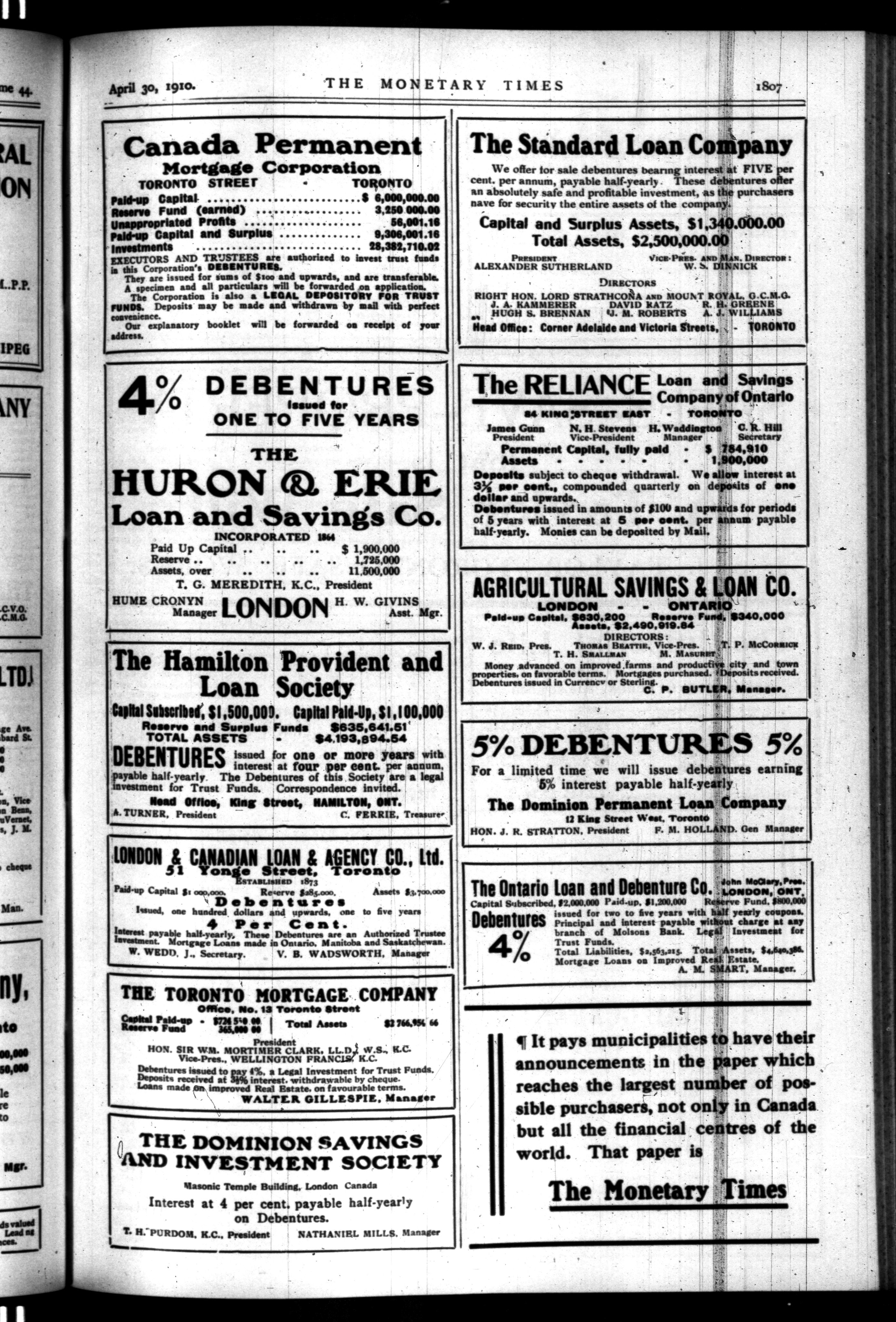 The monetary times, trade review and insurance chronicle : Vol. 44, No. 18 (April 30, 1910)