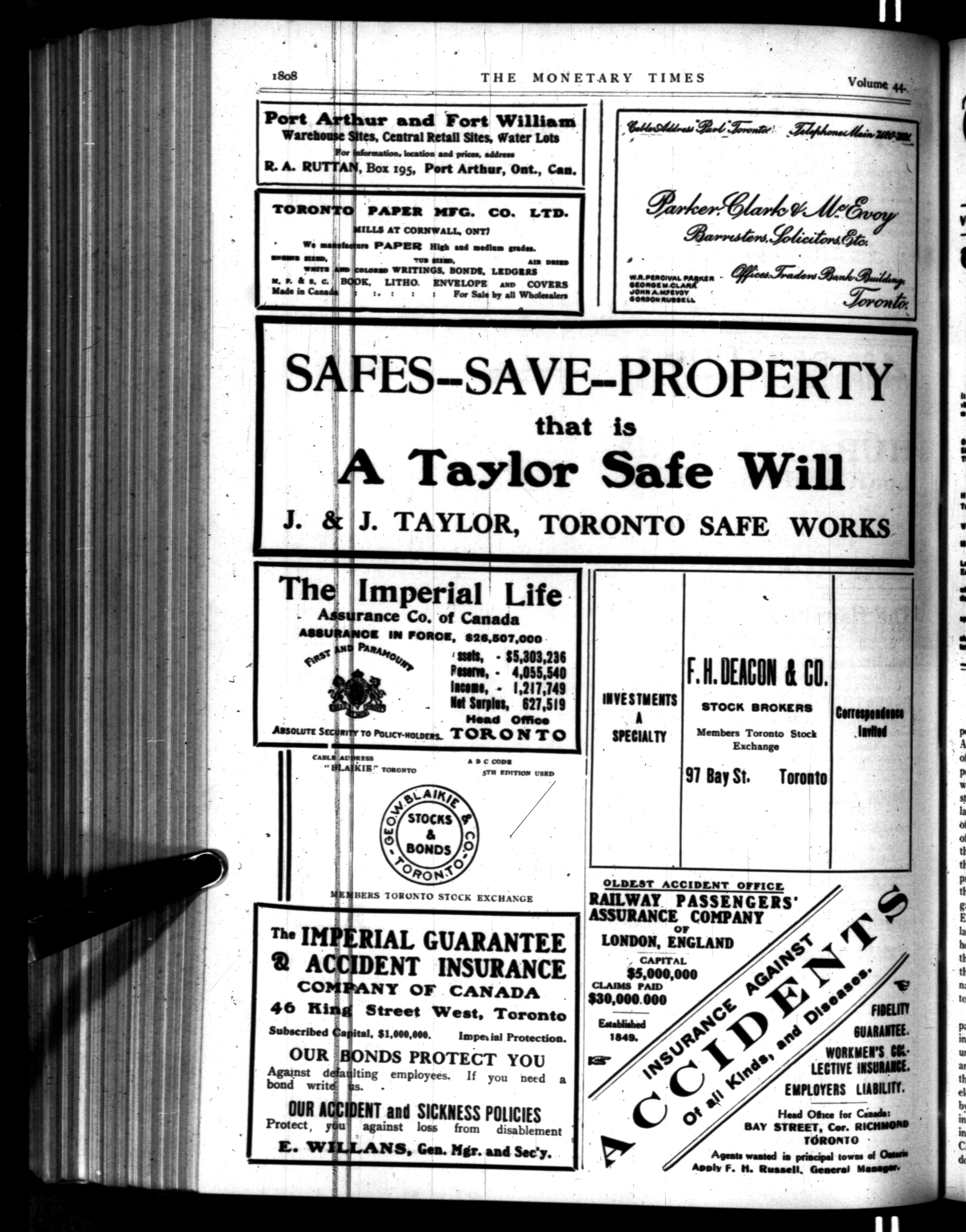 The monetary times, trade review and insurance chronicle : Vol. 44, No. 18 (April 30, 1910)