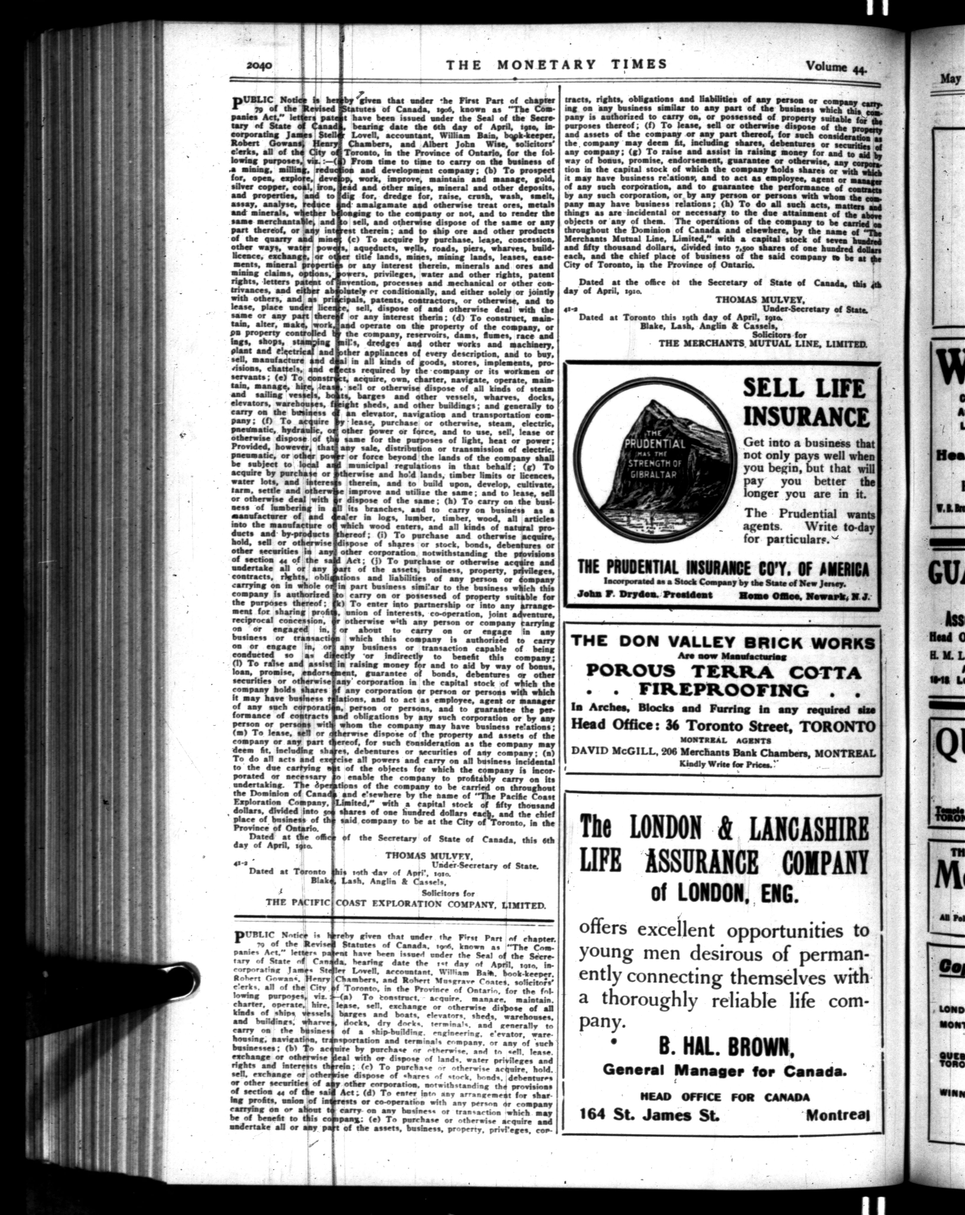 The monetary times, trade review and insurance chronicle : Vol. 44, No. 20 (May 14, 1910)