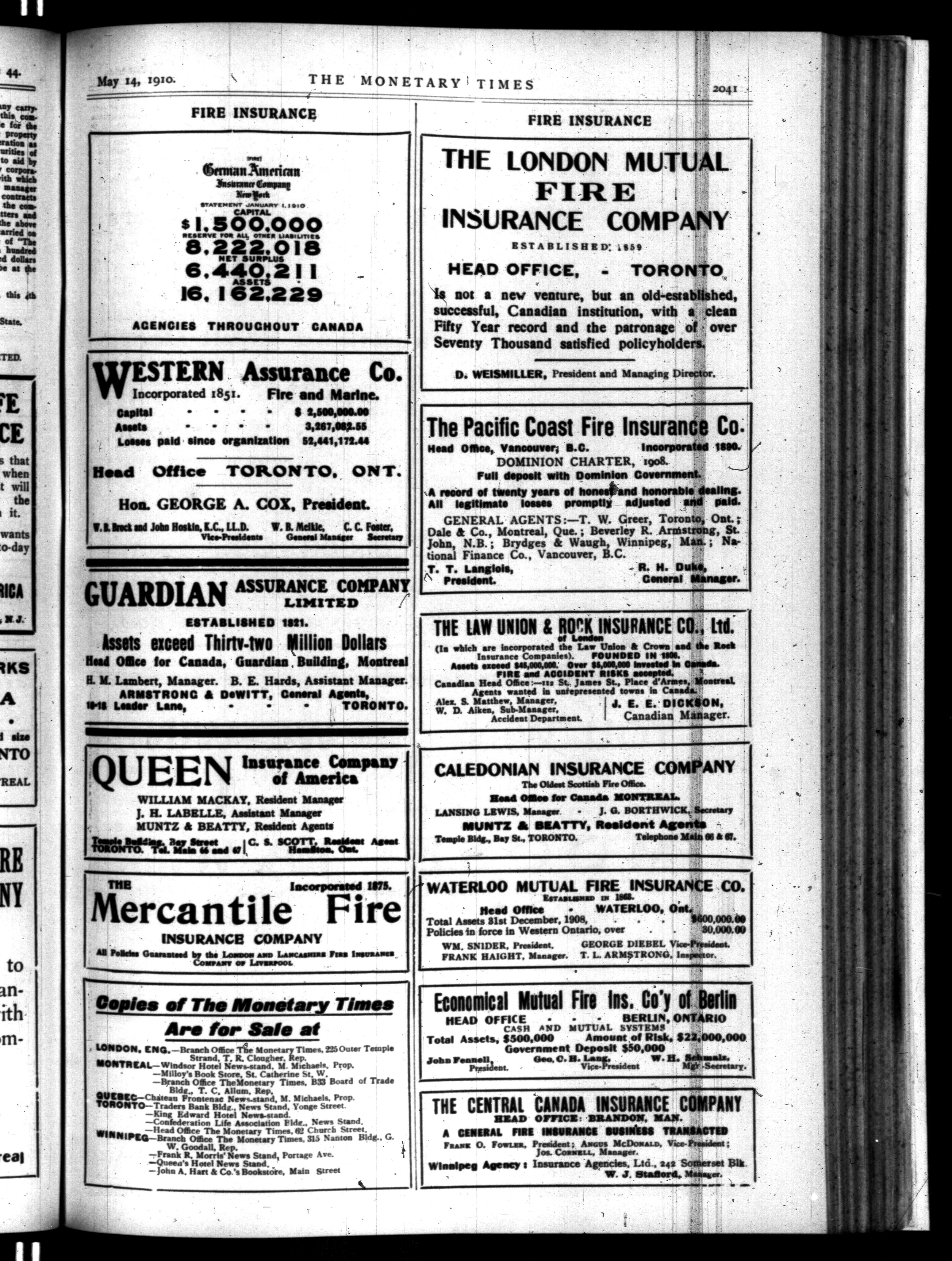 The monetary times, trade review and insurance chronicle : Vol. 44, No. 20 (May 14, 1910)