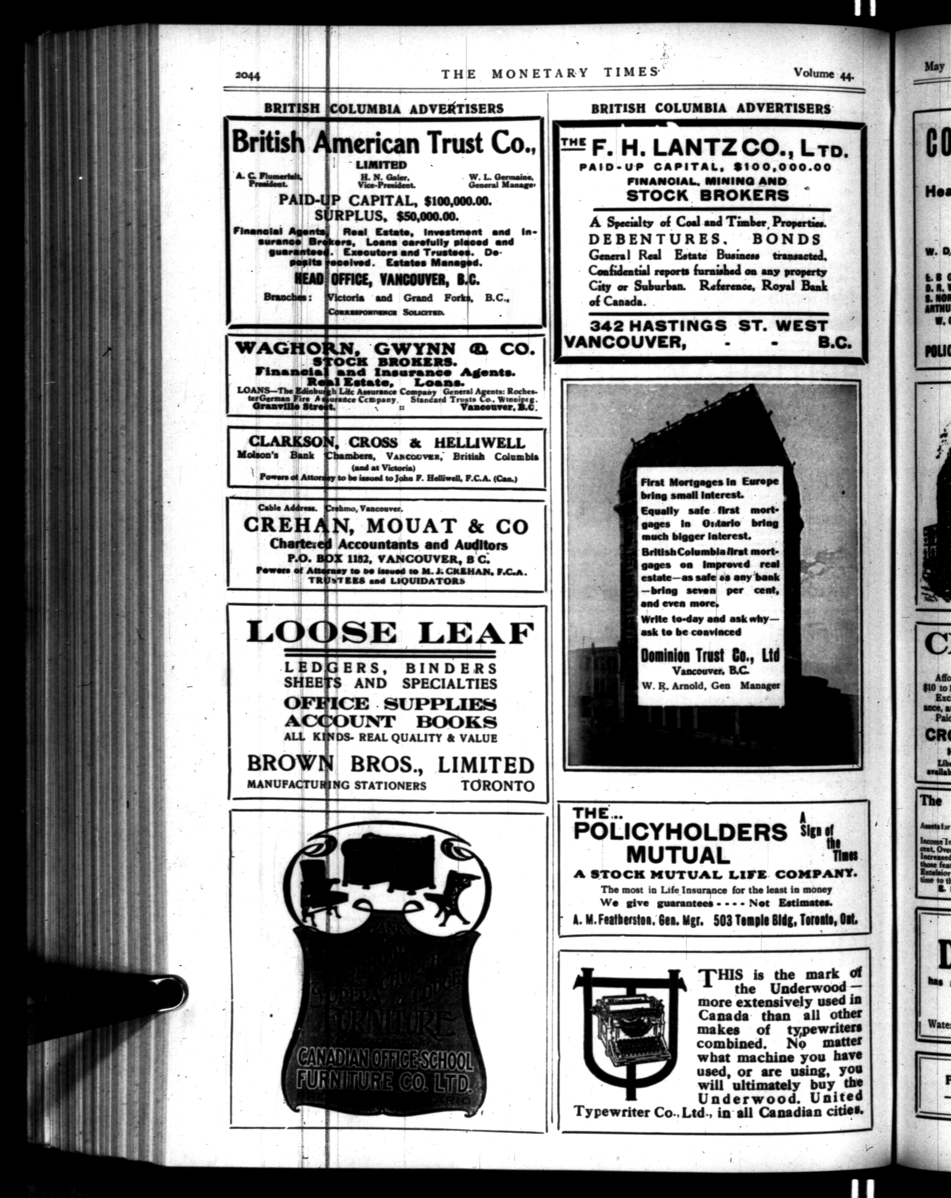 The monetary times, trade review and insurance chronicle : Vol. 44, No. 20 (May 14, 1910)